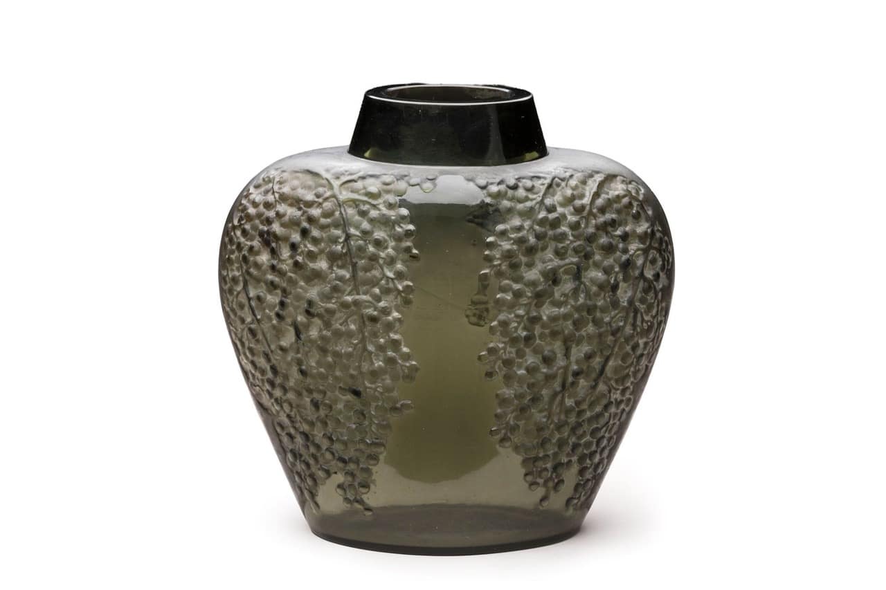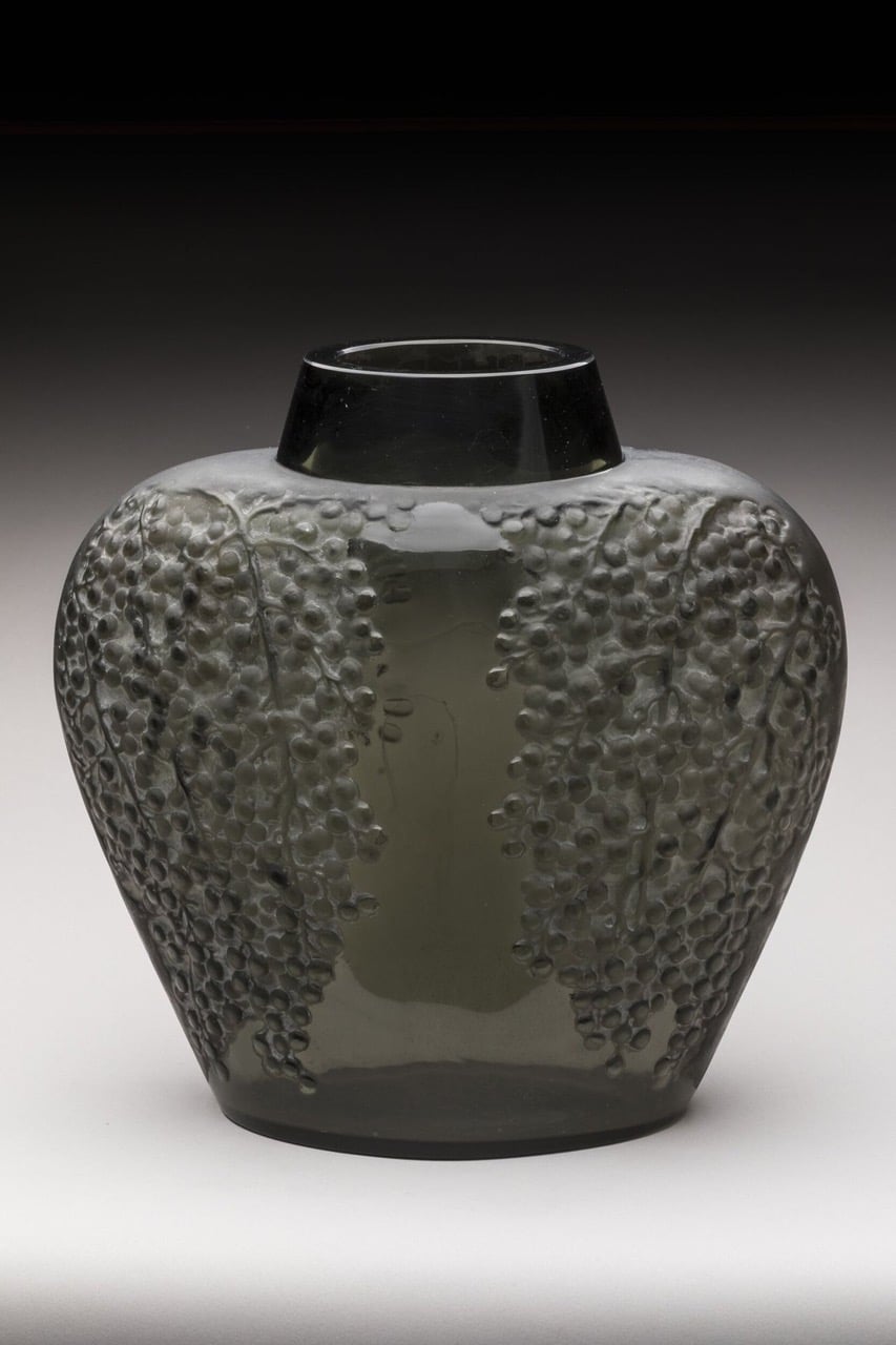 Verre gris topaze patiné noir. Signé « R. Lalique ».