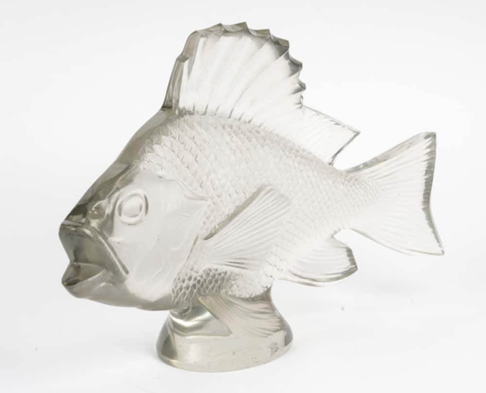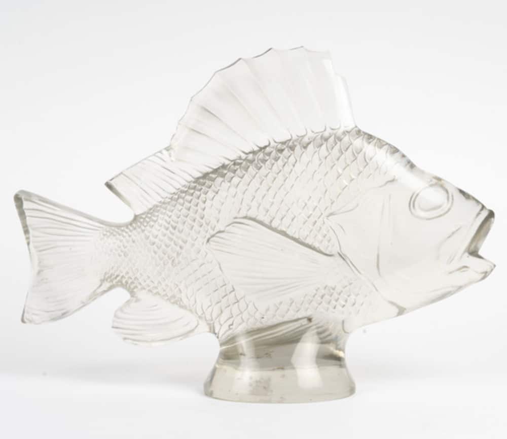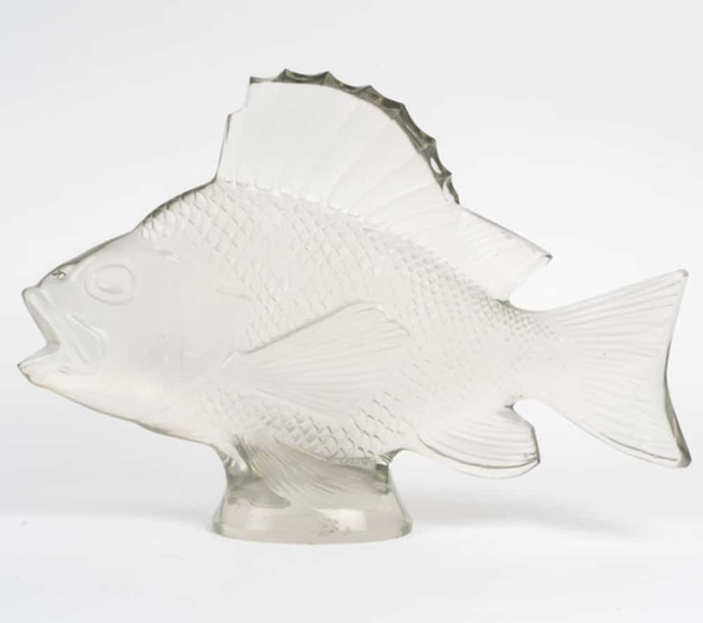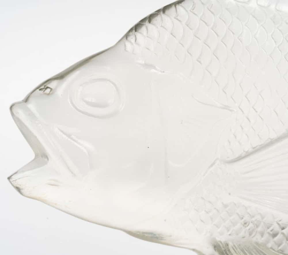 Motif décoratif “Gros poisson algues”. Épreuve réalisée en verre moulé-pressé.