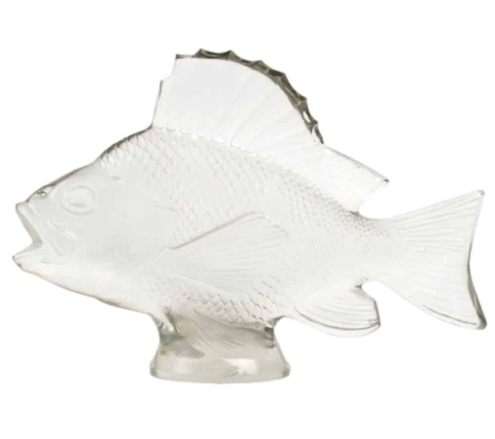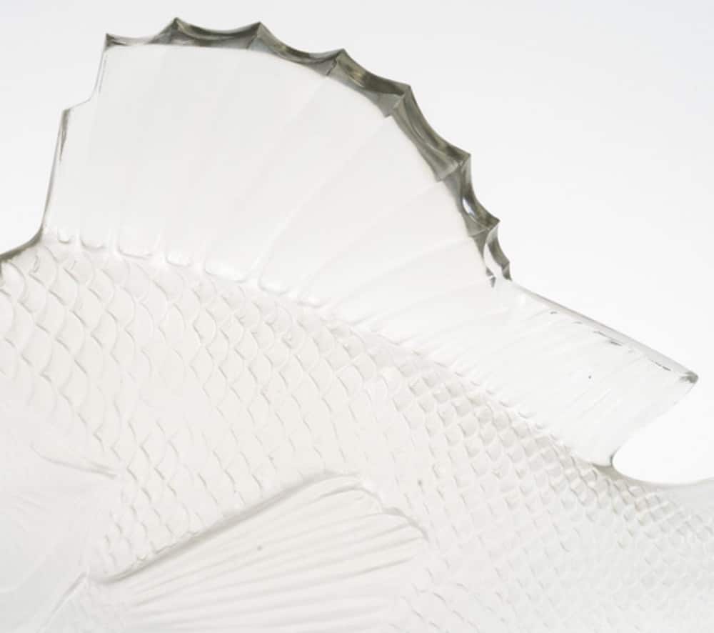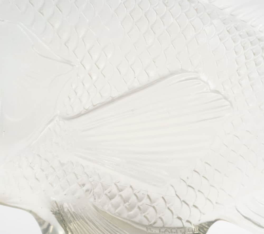 Signé R. Lalique en relief dans la masse et signature de contrôle sous la nageoire au stylet gravée .