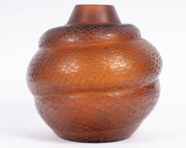 Vase ‘Serpent’ en verre teinté rouge ambre
