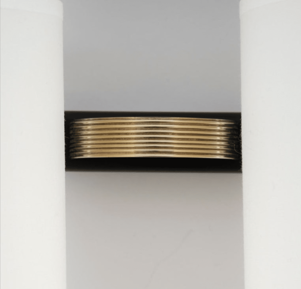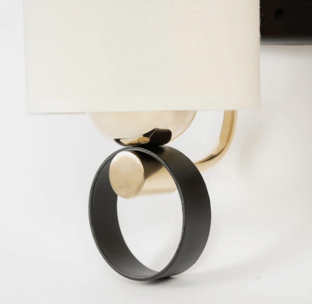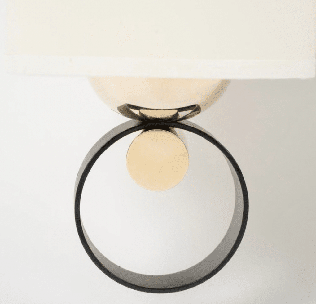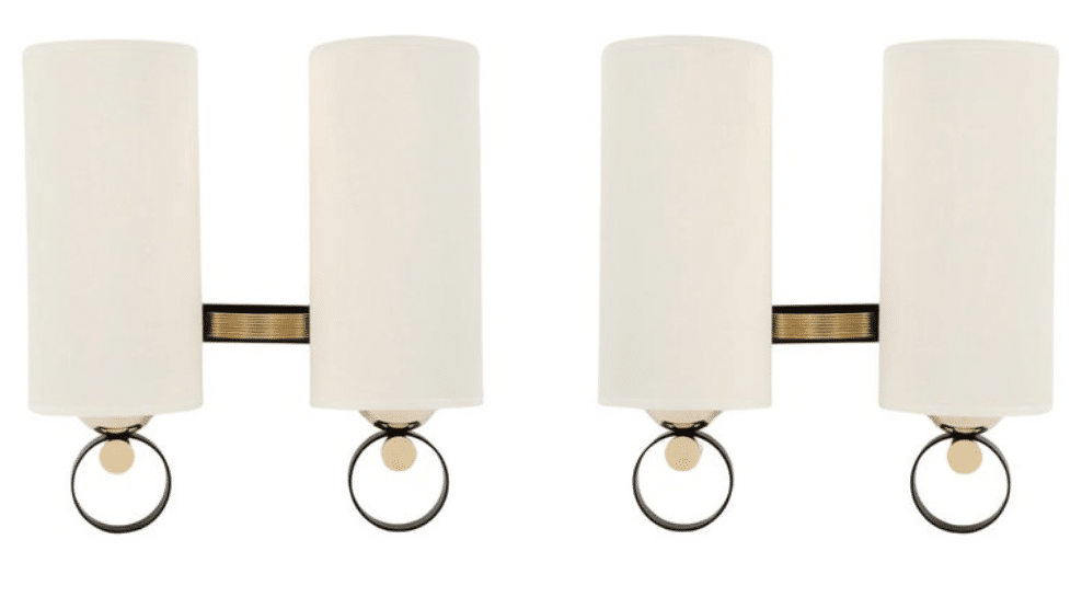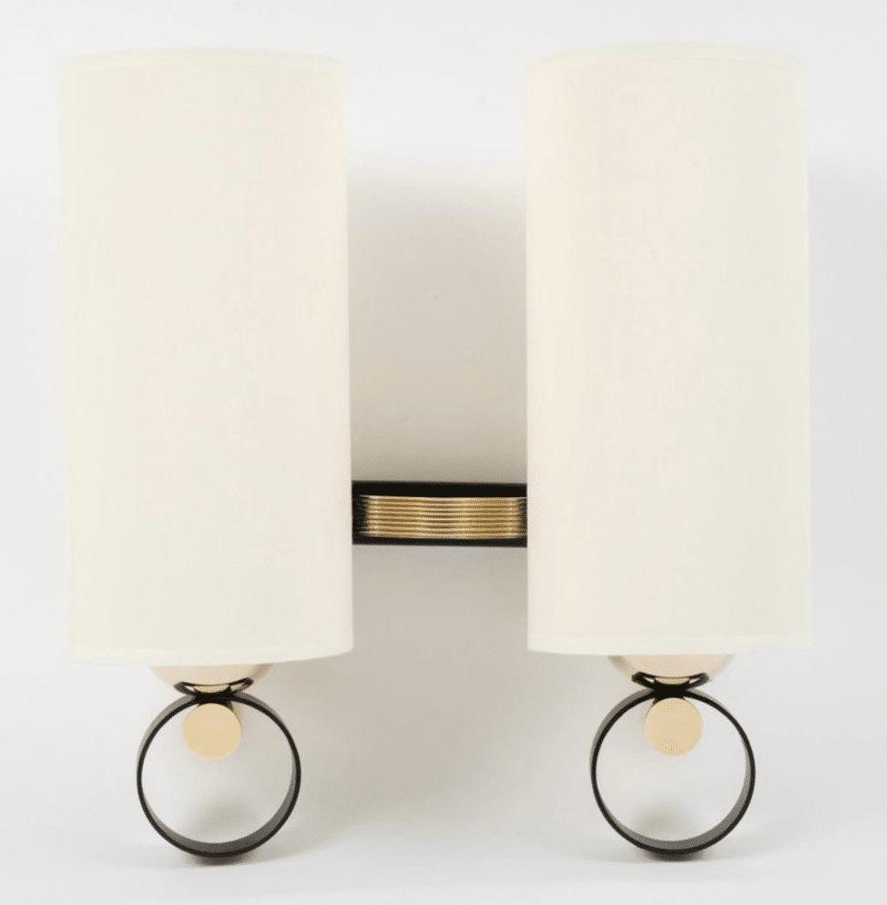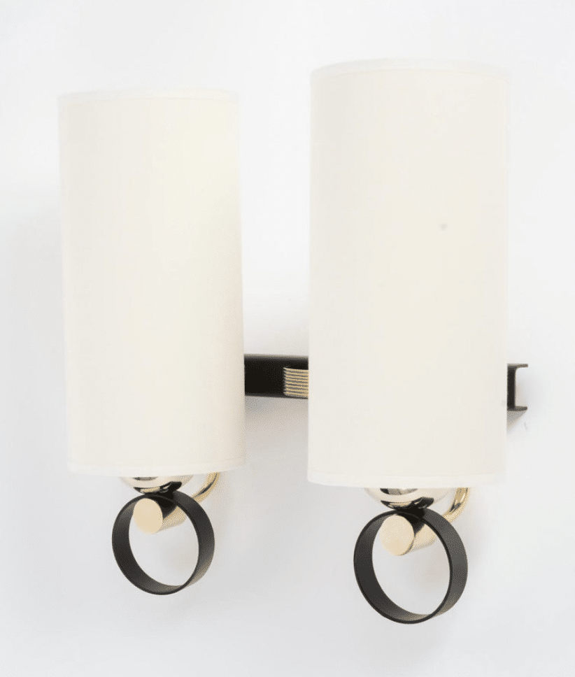 La partie supérieure des appliques est recouverte d’abat-jours cylindriques en coton blanc cassé, reproduits à l’identique.