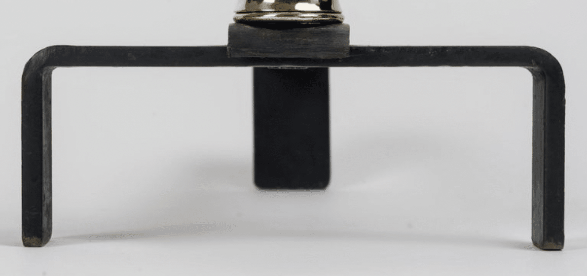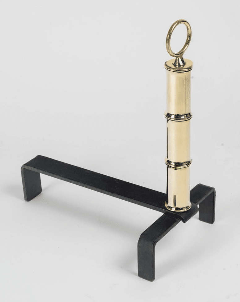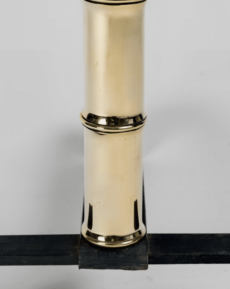 Ils sont composés d’éléments en laiton empilés selon un motif rappelant le bambou, se terminant par des anneaux, avec une base en fer forgé.