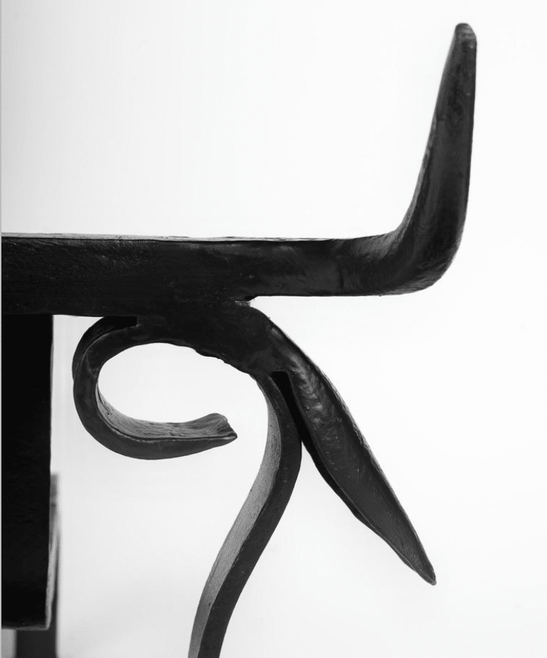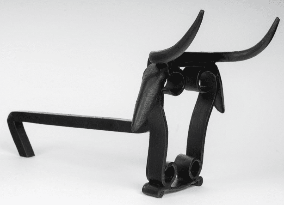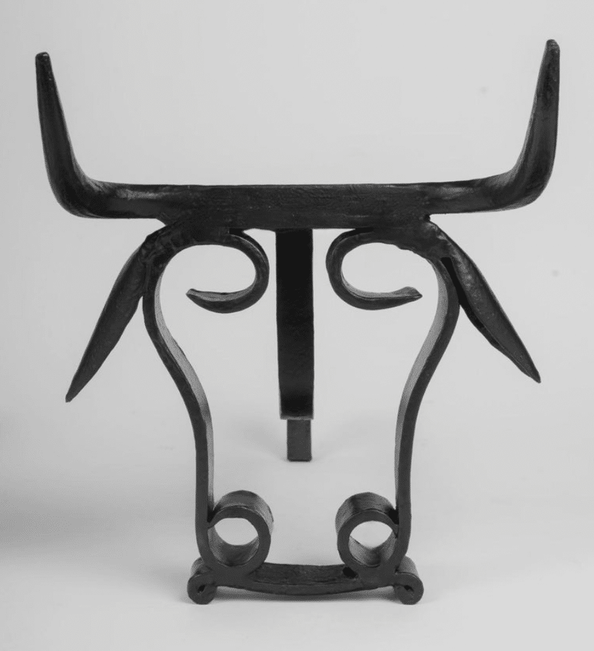 La partie avant est constituée d’une tête de taureau stylisée reposant sur le sol, le pont du nez s’étendant vers l’arrière pour servir de support aux bûches du feu.