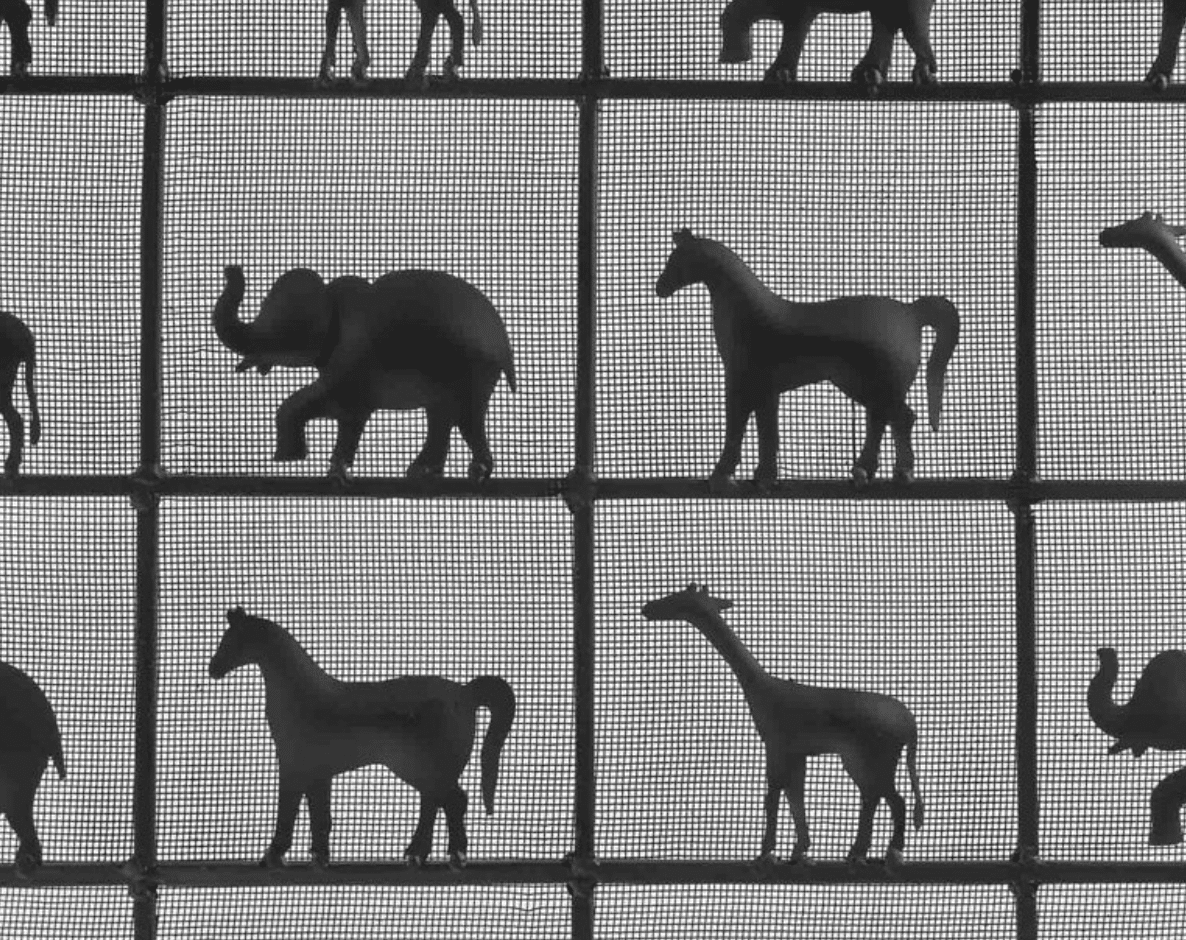 Magnifique ferronnerie artisanale représentant des animaux : chevaux, éléphants, girafes.