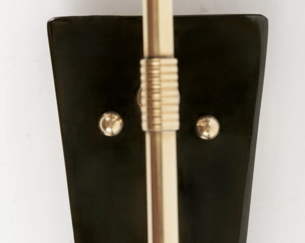 Dans sa partie supérieure, l’applique est recouverte d’un abat-jour noir à l’extérieur et doré à l’intérieur.