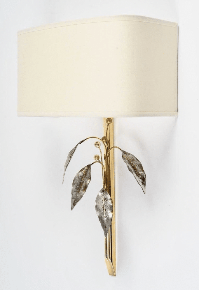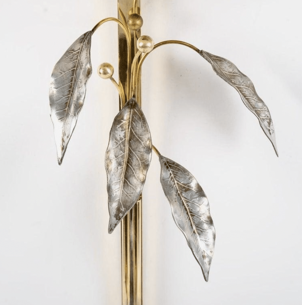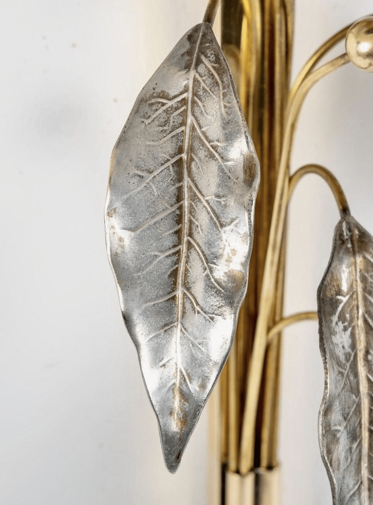 Composées d’une tige en laiton doré décorée et embellie de feuillages argentés et de fleurs stylisées représentées par des boules en laiton doré réparties sur le devant de l’applique.