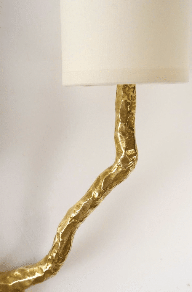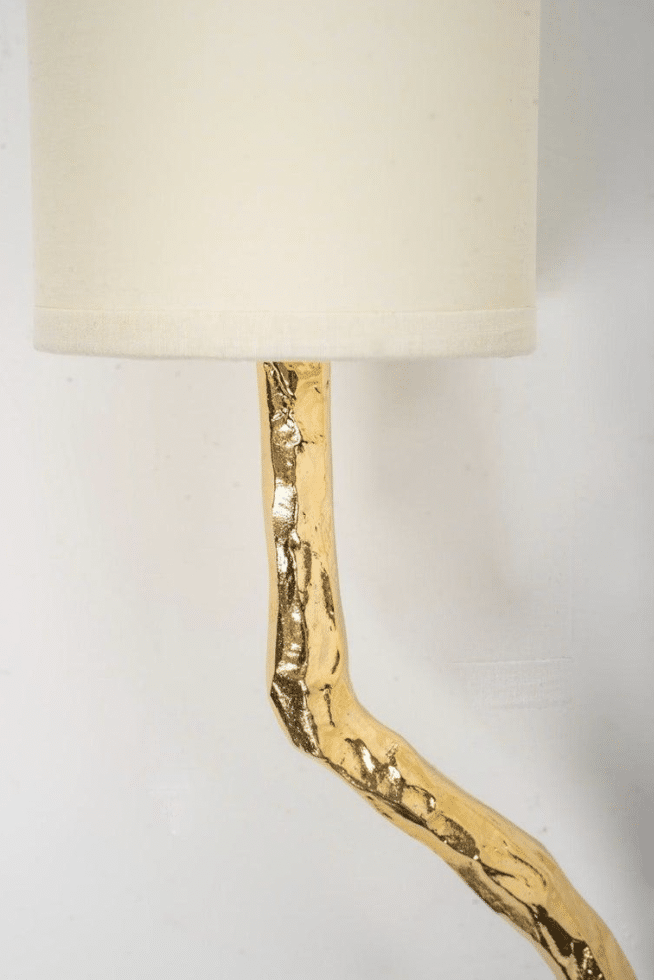 Ils sont recouverts d’abat-jours cylindriques en coton écru, reproduits à l’identique, reposant sur chaque branche.