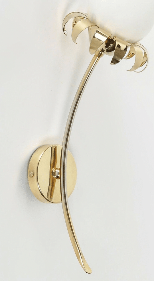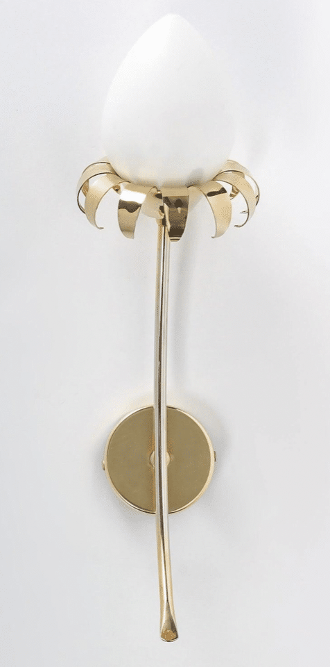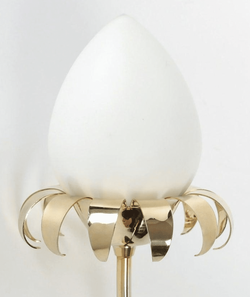 Composées d’une base arrondie en laiton doré soutenant une tige élancée et légèrement incurvée faisant office de tige florale, décorées à leur sommet d’une fleur stylisée composée d’une opaline ovoïde formant le pistil et ornées à leur base d’une couronne de pétales dorés.
