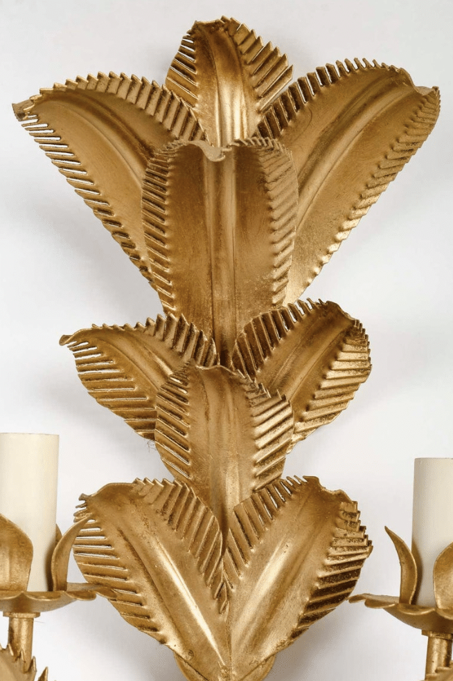 Composées de feuilles de palmier disposées à trois hauteurs différentes en métal doré formant le support mural.