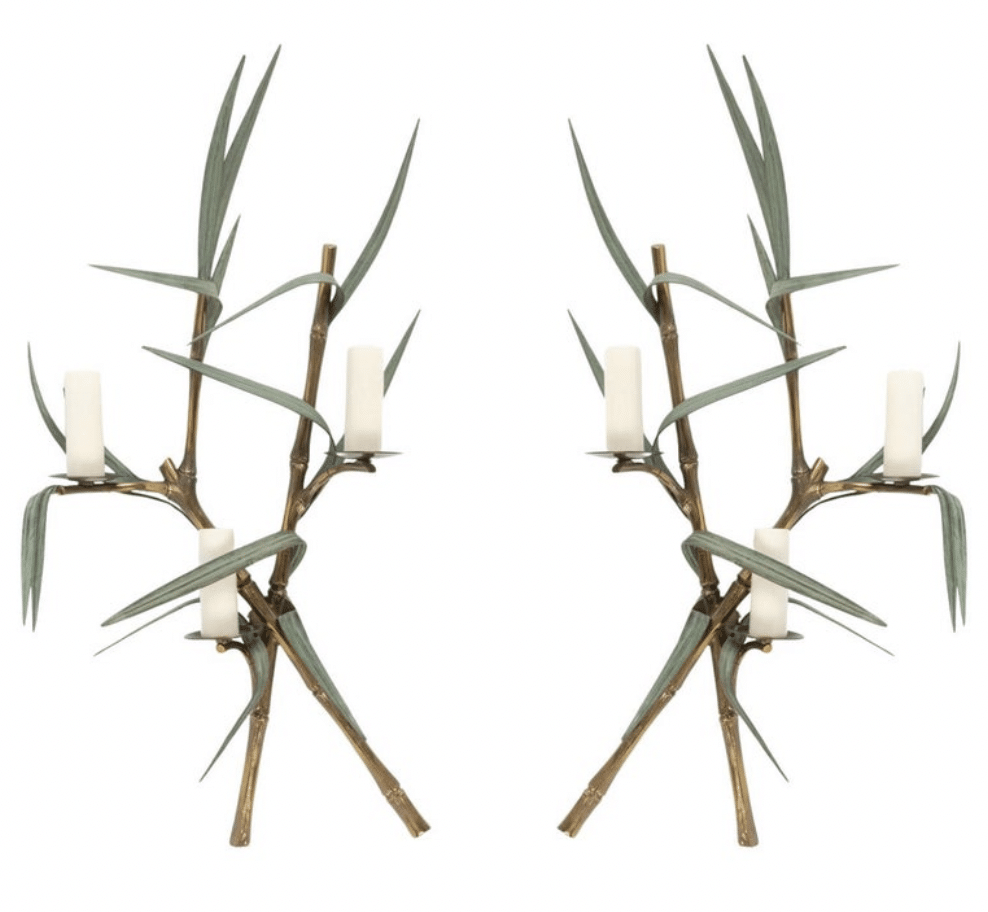 Paire rare d’appliques murales en bronze imitant le bambou par la Maison Charles, datant des années 1960/1970, signées