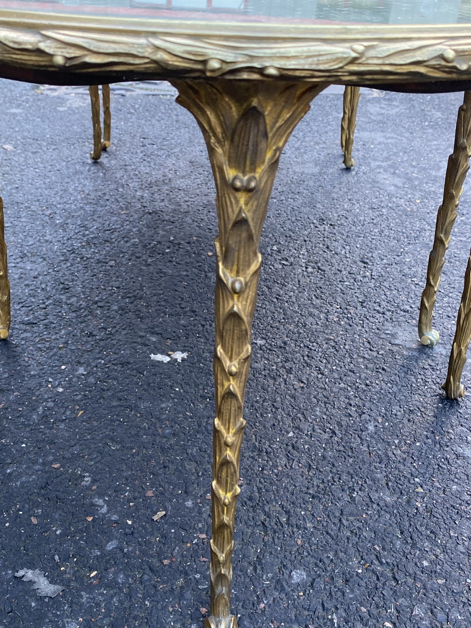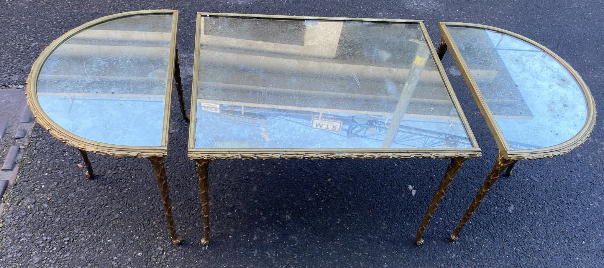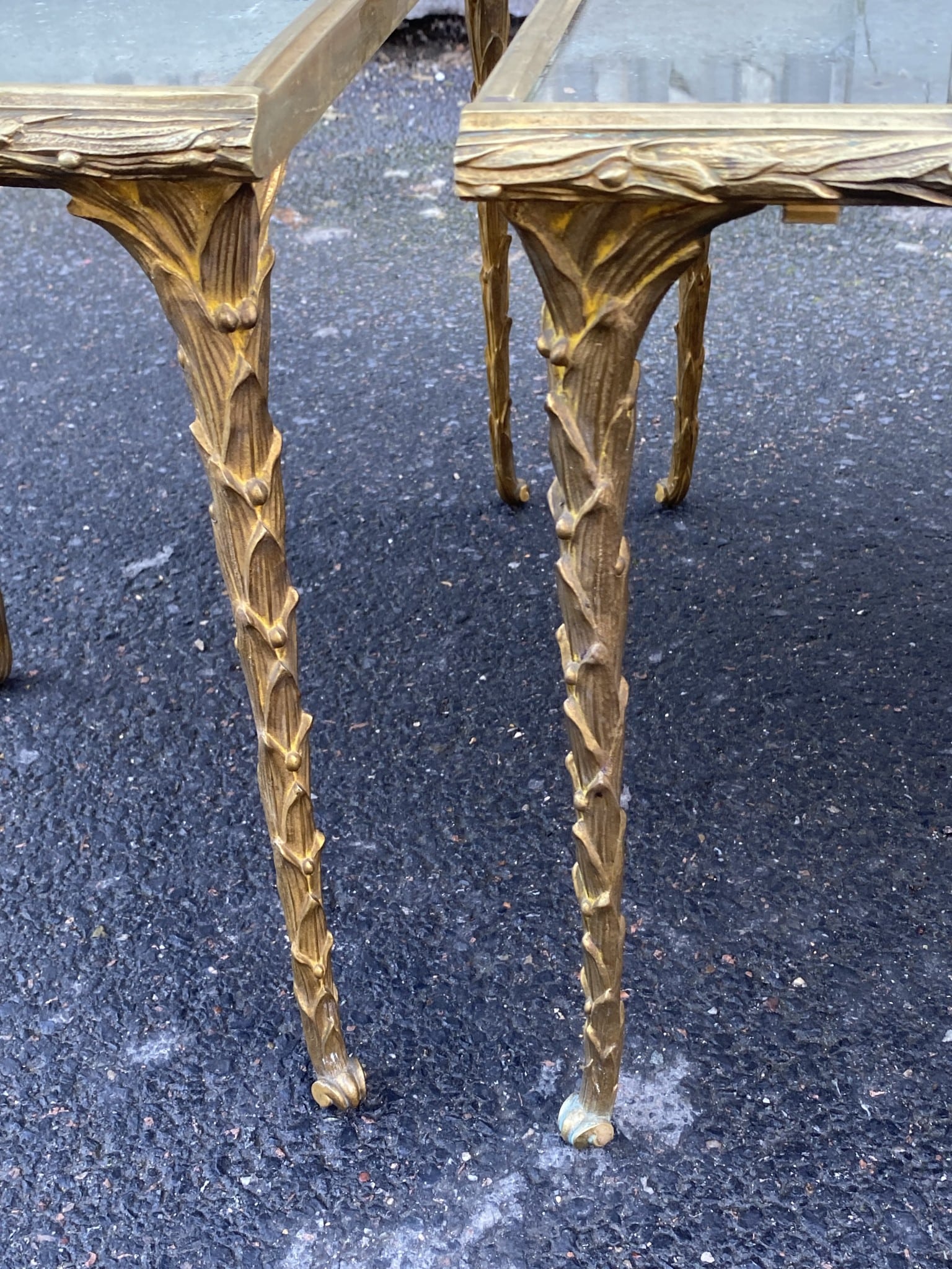 1970′ Table Tripartite Maison Charles, Jansen Ou Baguès Décor Palmier en Bronze Doré avec Plateaux Miroirs Vieillis