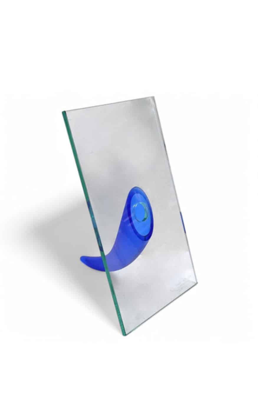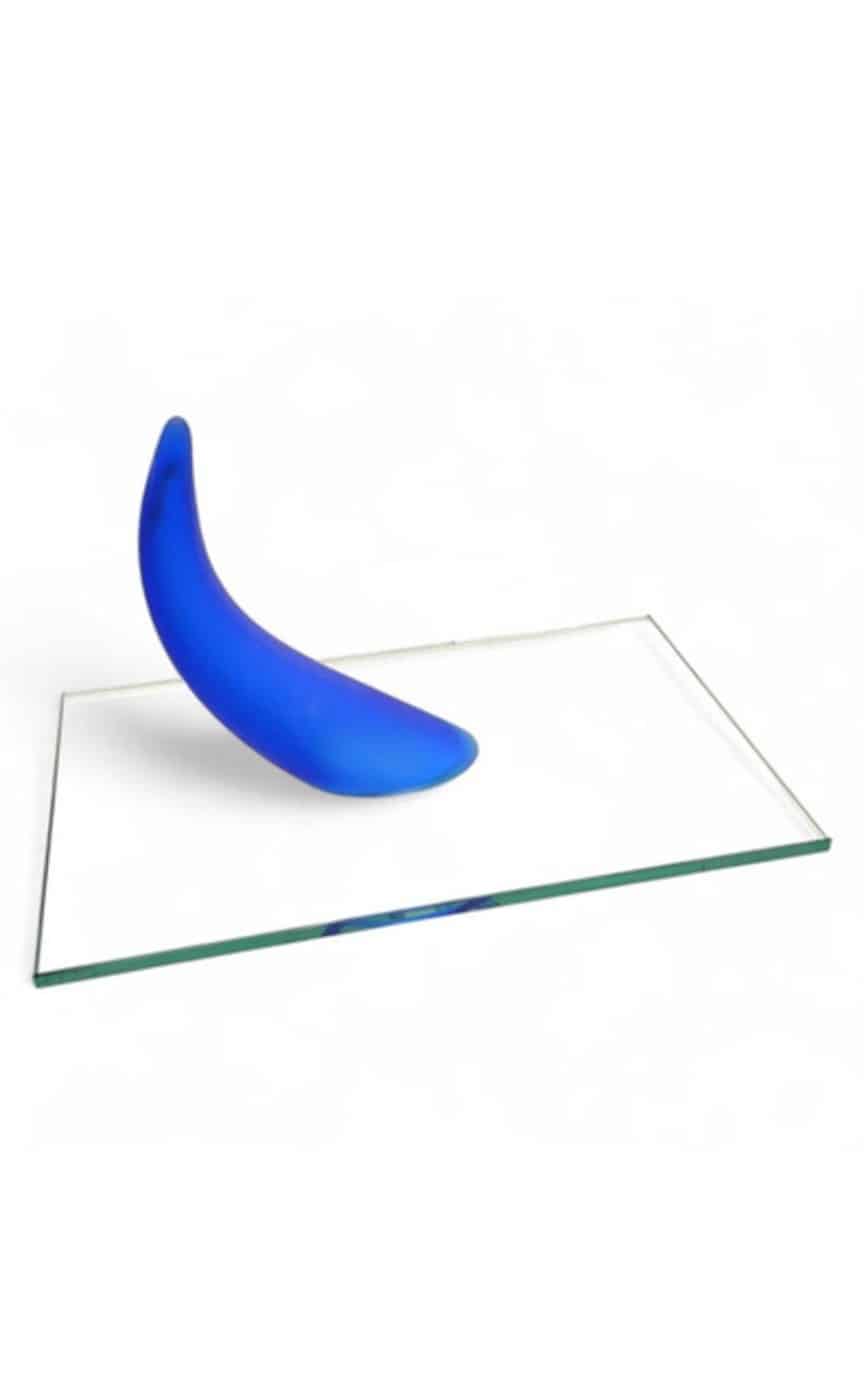 Vase en verre et cristal bleu sablé, annoté « Daum – New York Royalton March 1991 » H.: 46 cm l.: 29 cm P.: 30.5 cm (dans sa boite d’origine à la forme)