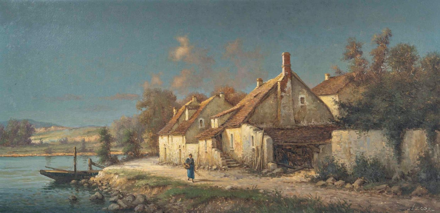 Alphonse Lecoz (1833–1914) Un Hameau au Bord de la Rivière Huile sur toile vers 1880–1890