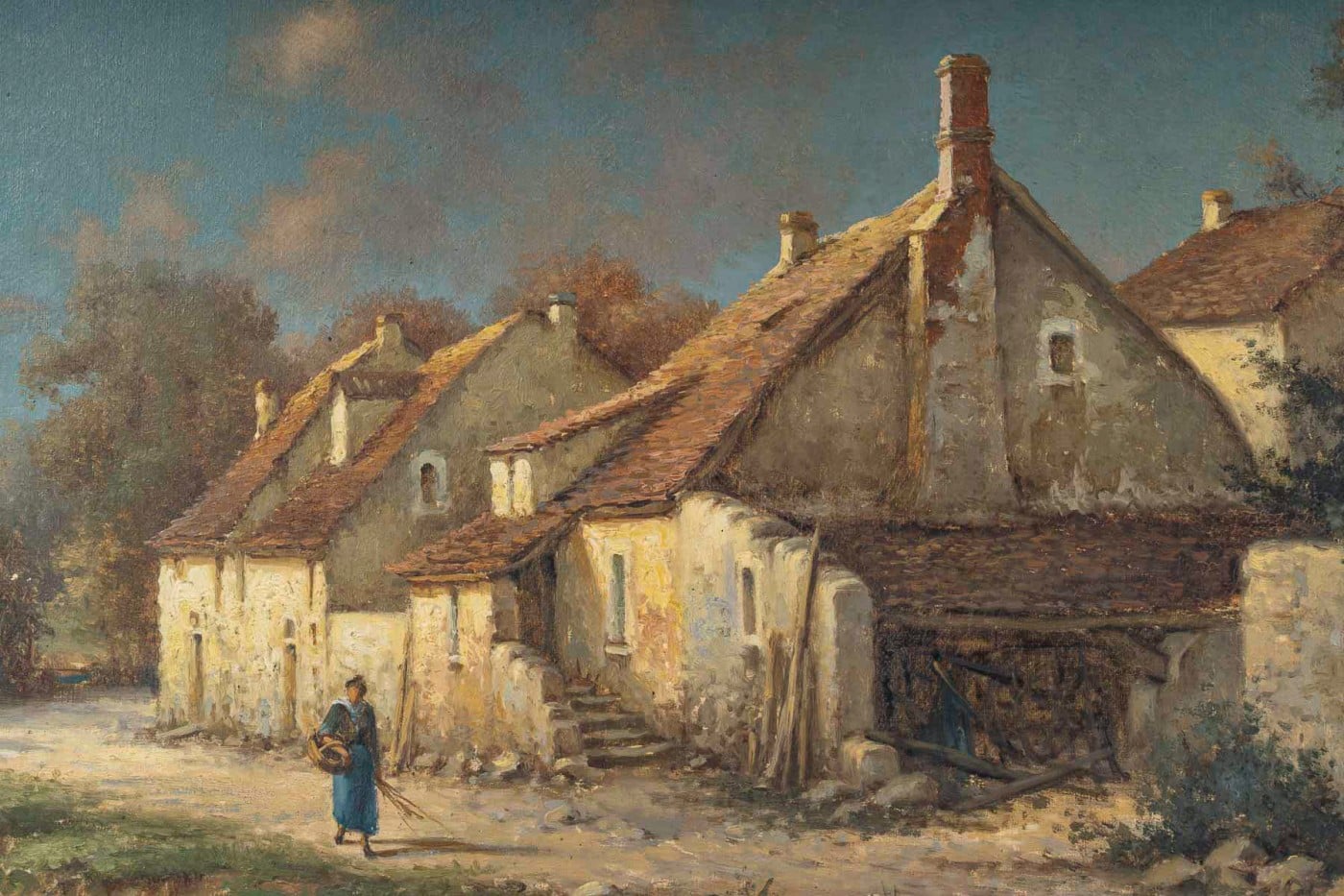 Realism: The faithful depiction of buildings, vegetation, and the figure reflects a commitment to portraying rural life as it truly was, without excessive idealization.
