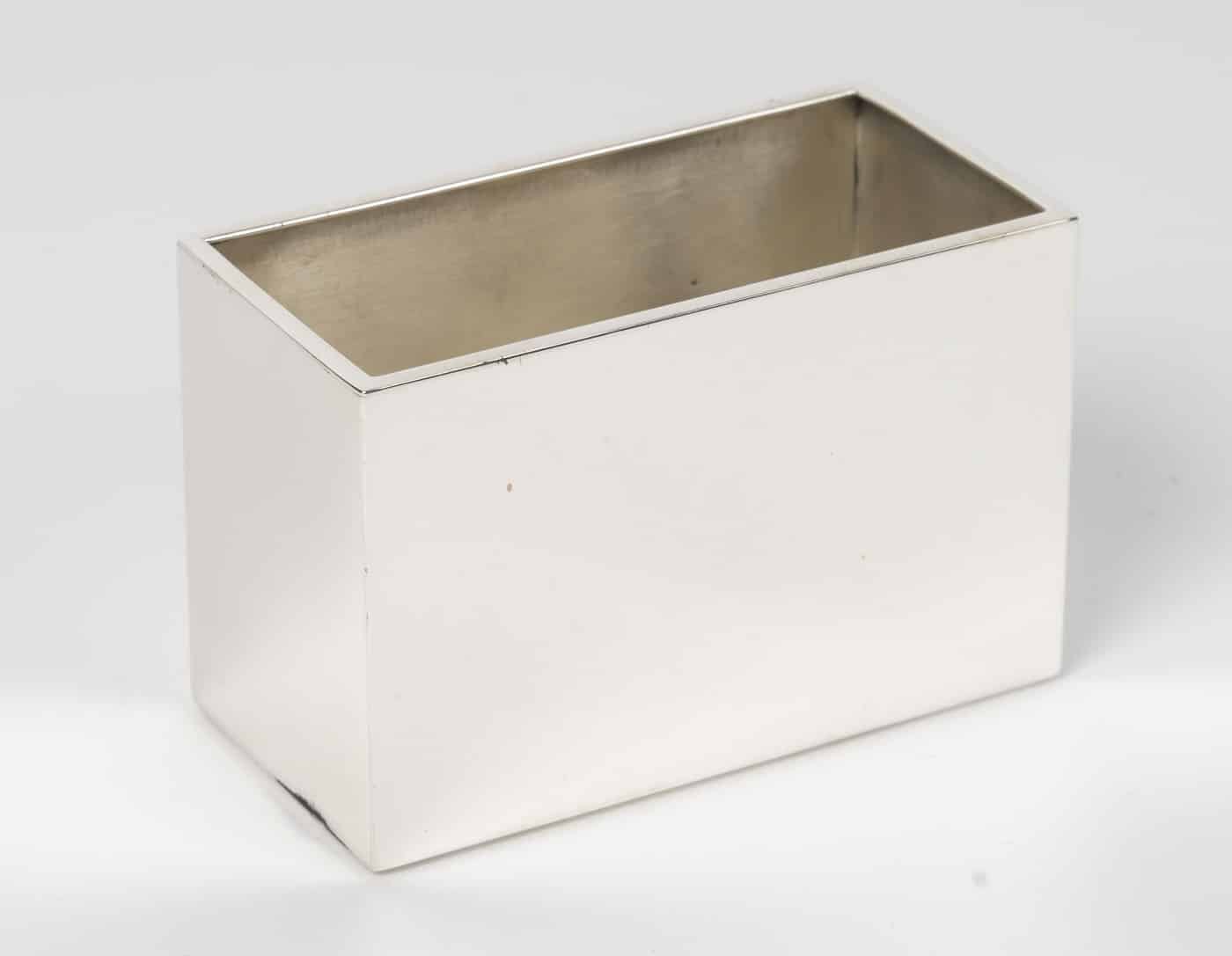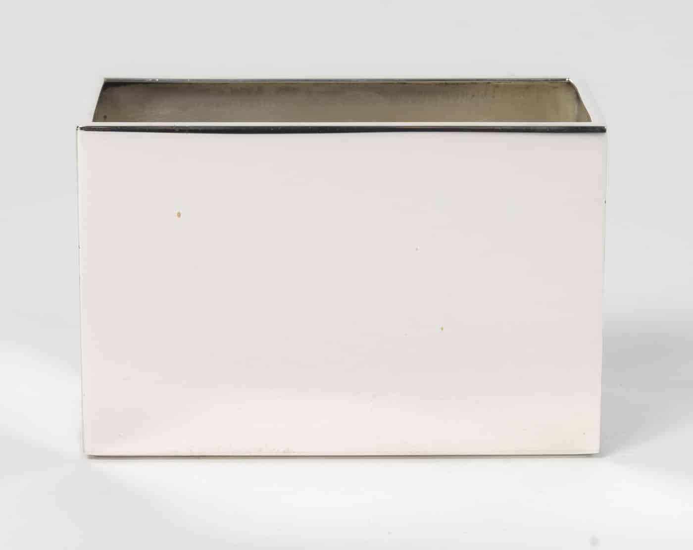Récipient rectangulaire minimaliste, à la sobriété assumée.