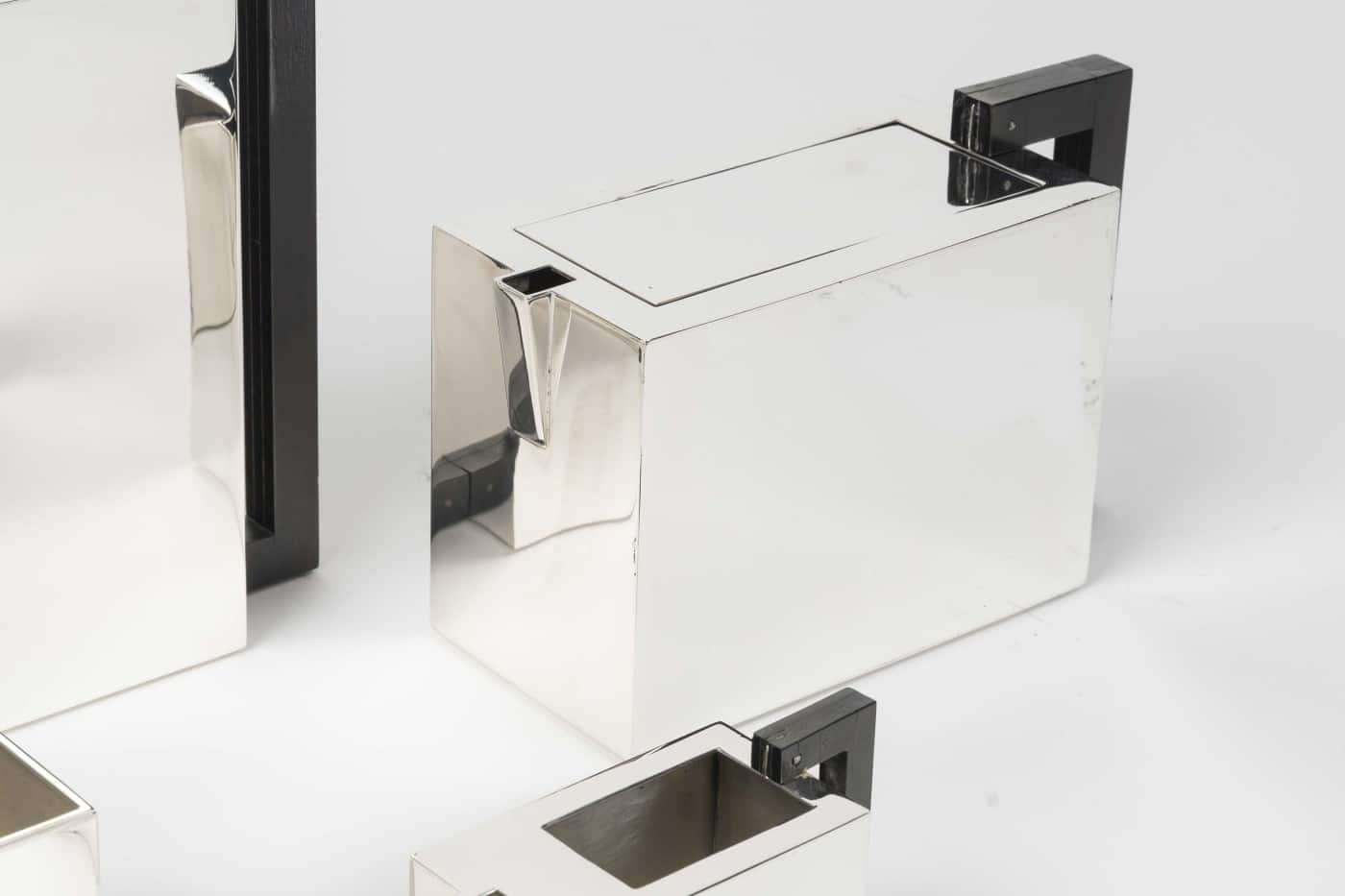 Superbe service à thé et café de conception moderniste, réalisé en argent massif 925/000