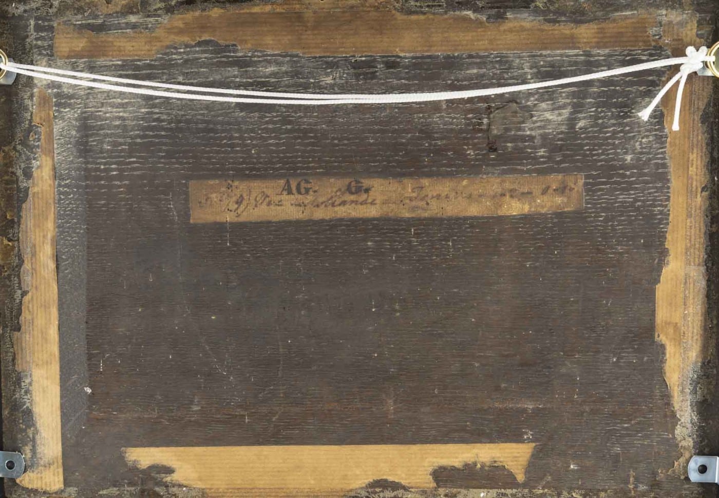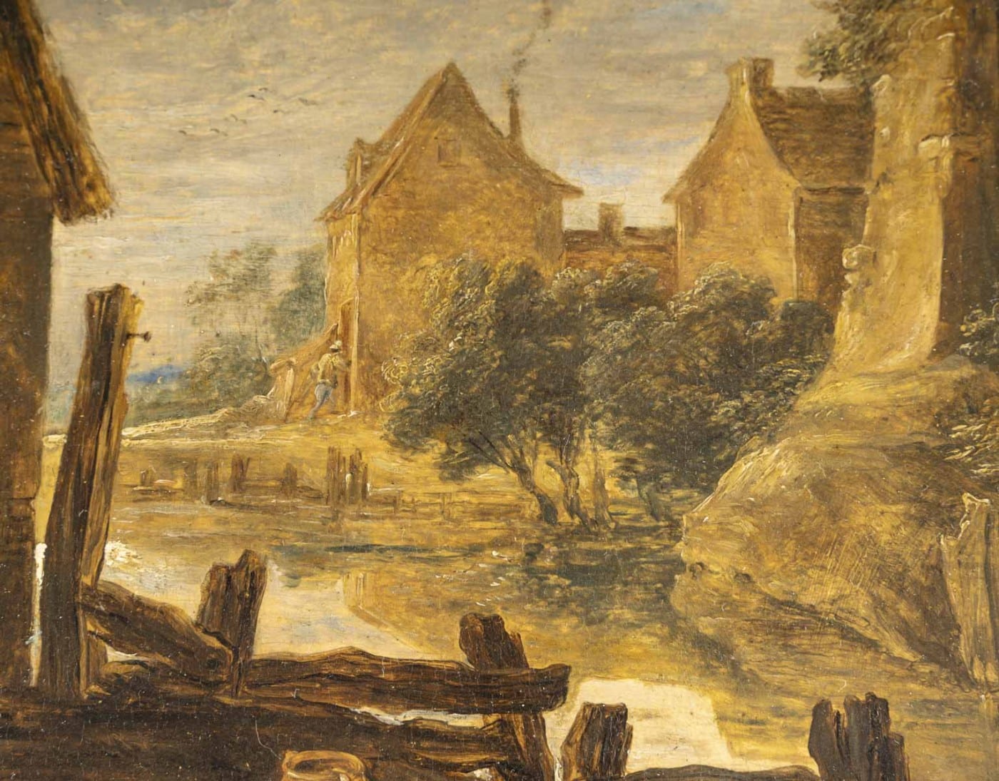 La touche est fine et précise, la palette est chaude dans des teintes mordorées avec de beaux glacis. Le ciel nuageux est illuminé par quelques percées de bleu.