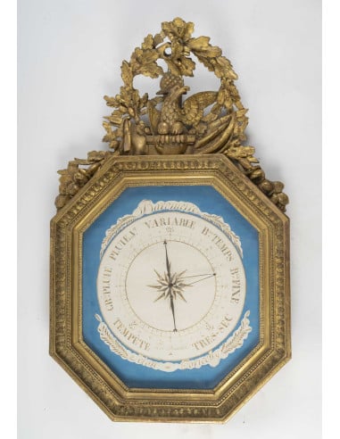 Baromètre de forme octogonale en bois sculpté et doré selon Torricelli (1608-1647), d’époque Ier Empire (1805-1815), XIXème siècle.