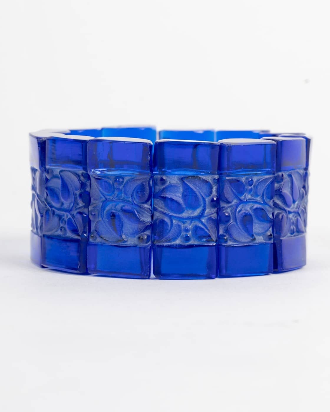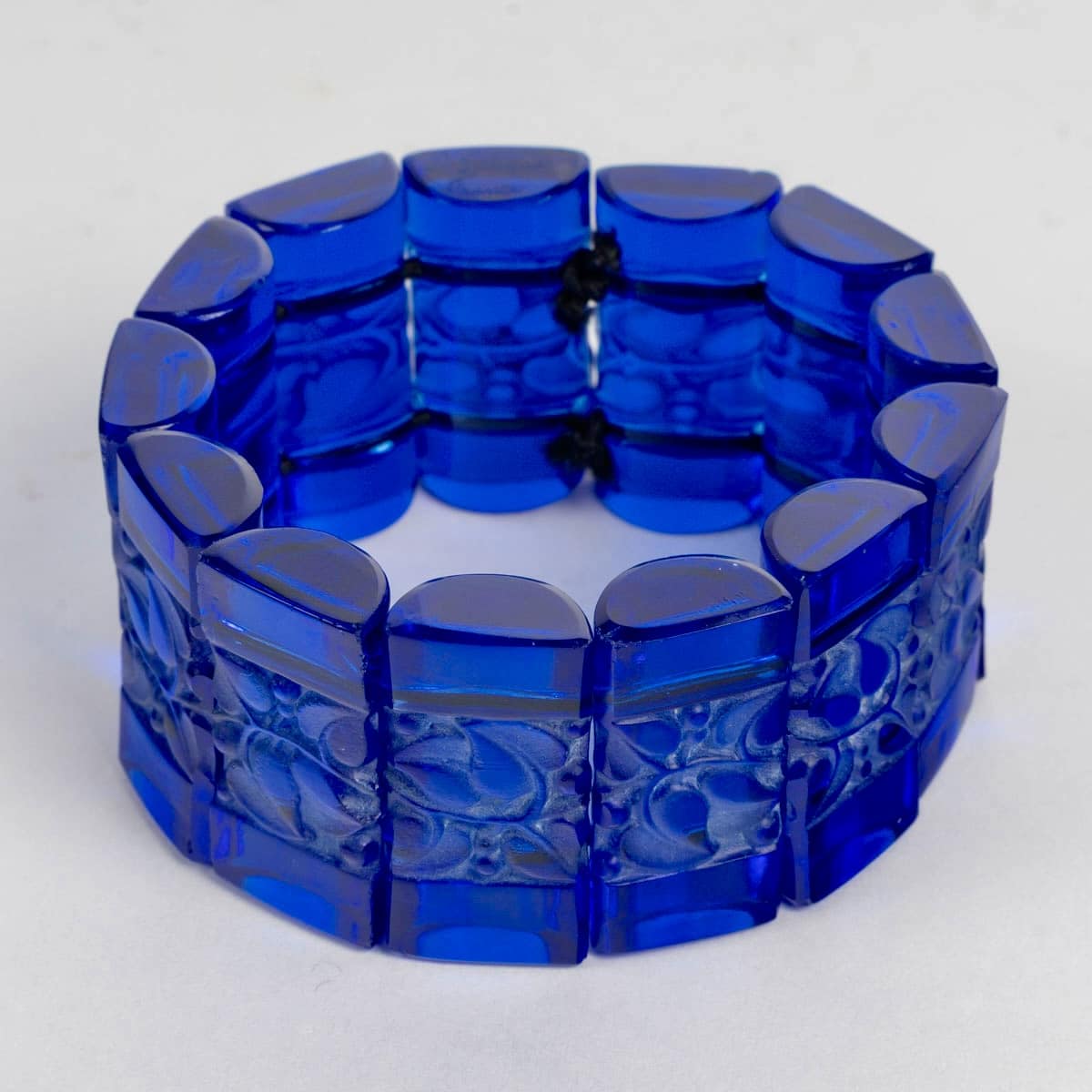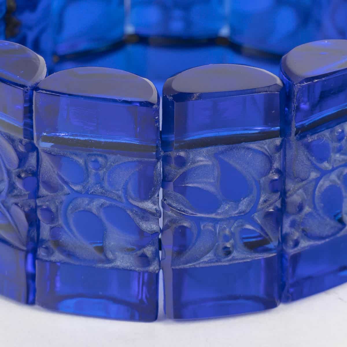 Bracelet « Ceriser » en verre bleu patiné blanc de René Lalique créé en 1928.
