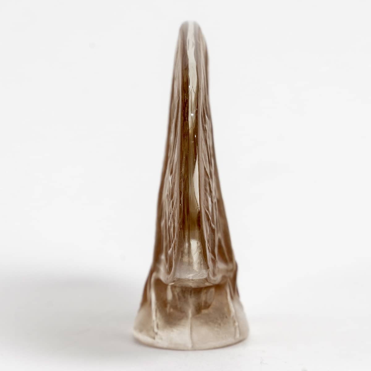 Cachet « Papillon Ailes Ouvertes » en verre blanc patiné sépia de René Lalique créé en 1919.