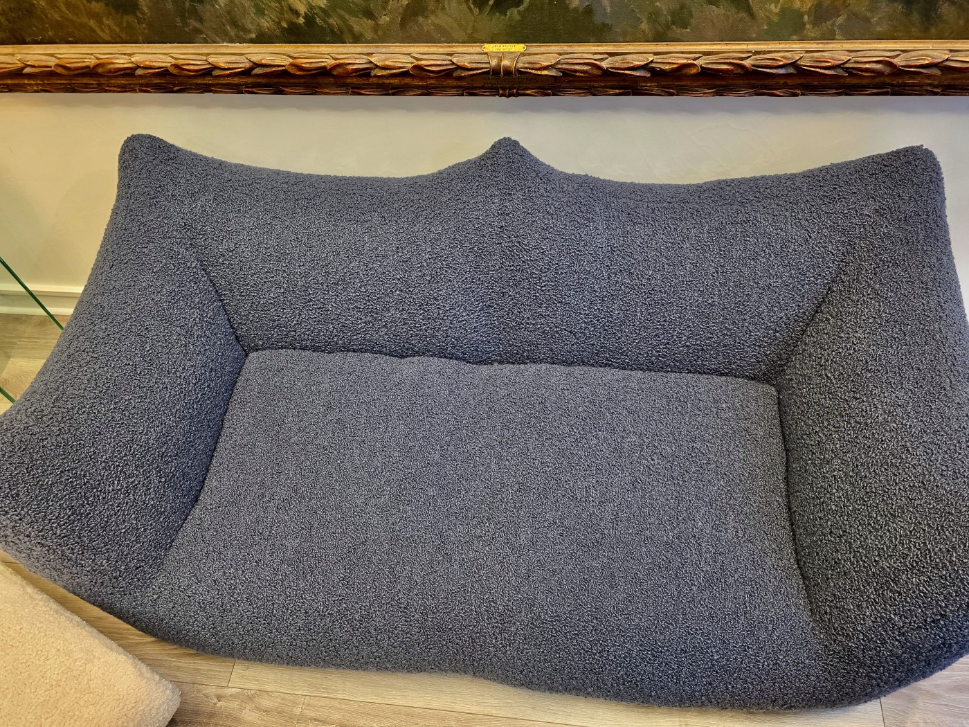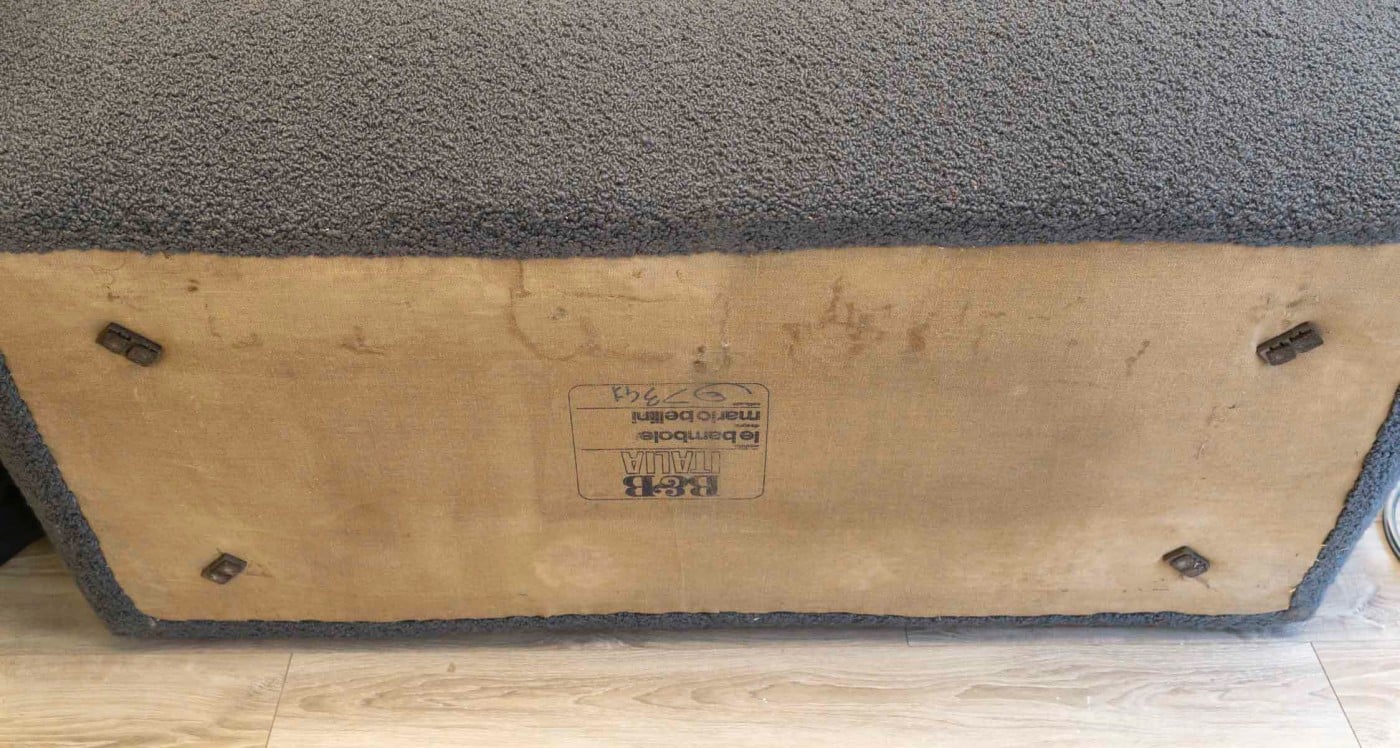 Le modèle présenté ici est une version ancienne et authentique (cf photos du dessous du canapé), construite avec un cadre en plastique dissimulé et enrobé de polyuréthane.
