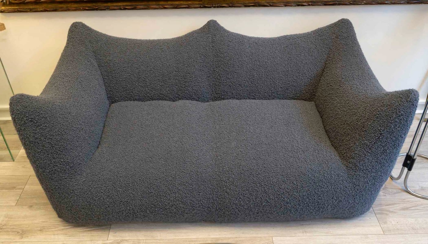 Les coutures piquées divisent la forme en quadrants, ajoutant du rythme et de la clarté à sa forme autrement organique. Le concept de Bellini pour le Bam-bole était basé sur le déplacement des divisions rigides entre le dossier, l’accoudoir et le siège, ce qui a abouti à un volume unifié.