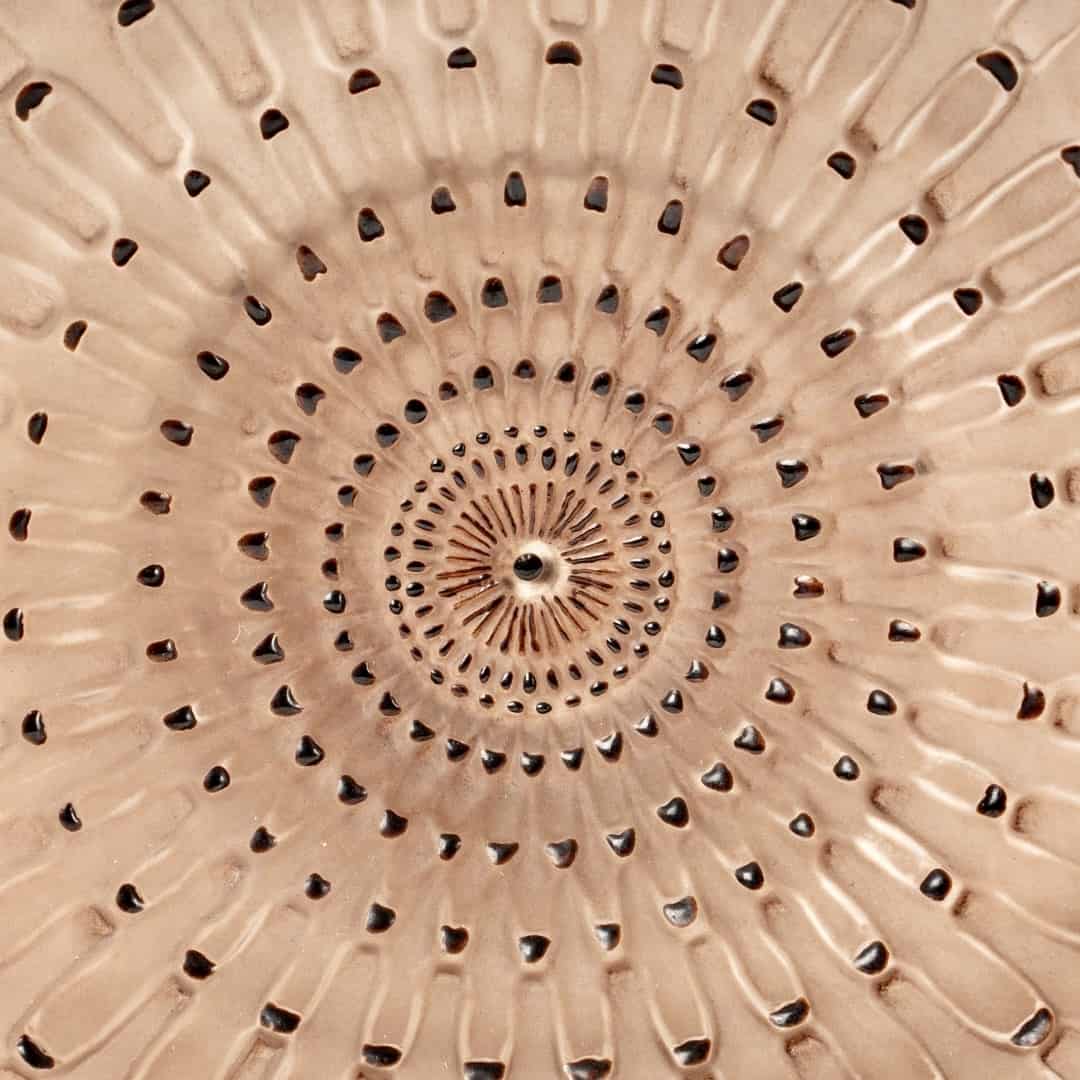 Carafe « Reine Marguerite » en verre blanc patiné sépia et émaillé marron d’origine à chaud créée par René Lalique en 1913.