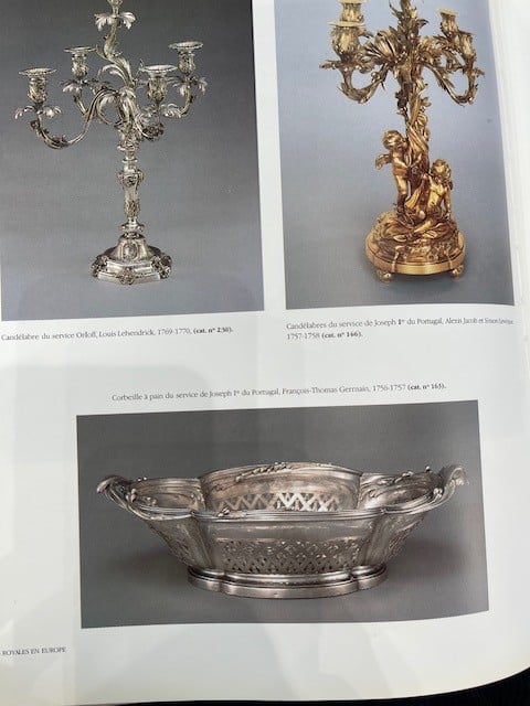 Grande Panière à fruits de forme polylobée en argent massif à décor de feuillage et agrafes. Le corps est ajouré et repercé d’un cannage agrémenté d’un semis de fleurs, flanqué de chaque côté d’anses en forme de feuilles d’acanthe et reposant sur une large bate.