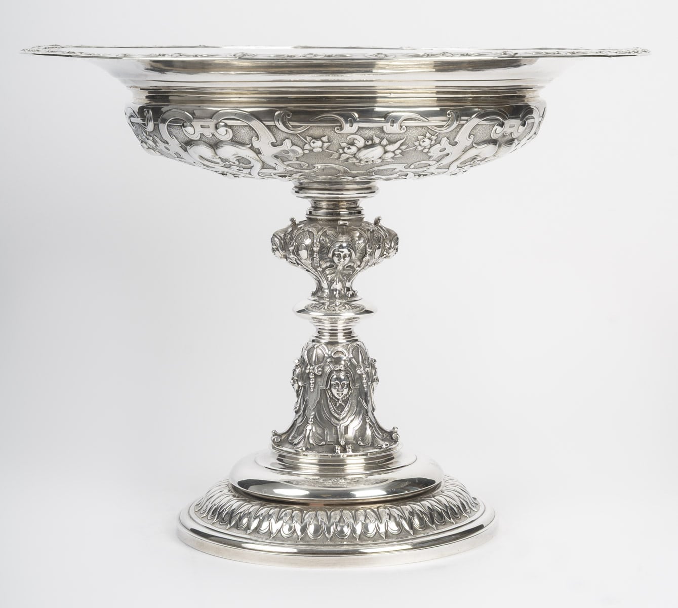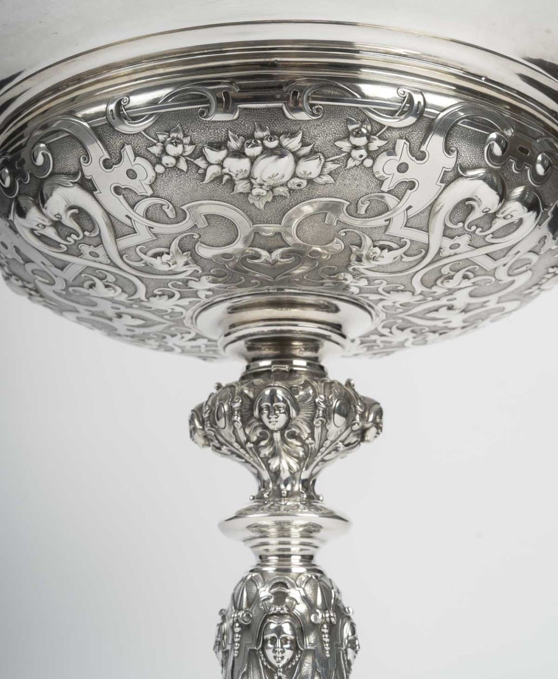 Charles-Nicolas ODIOT Importante coupe néo-Renaissance sur piédouche en argent massif XIXe