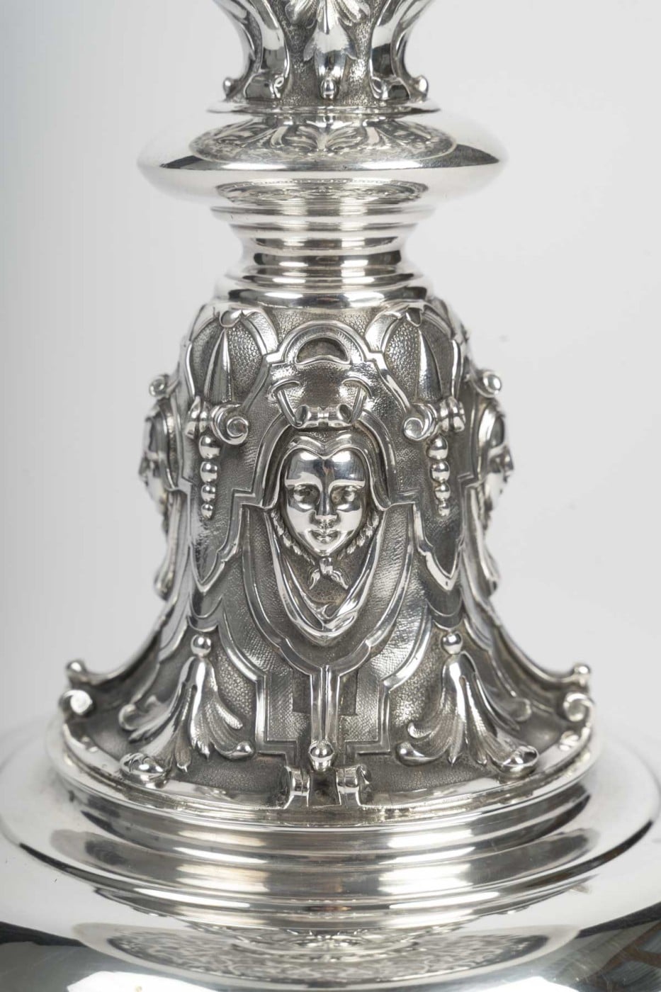 L’ensemble se distingue par la qualité exceptionnelle de la ciselure, la profondeur des reliefs et l’équilibre harmonieux des proportions, témoignant du savoir-faire prestigieux de l’une des plus grandes maisons d’orfèvrerie parisiennes.