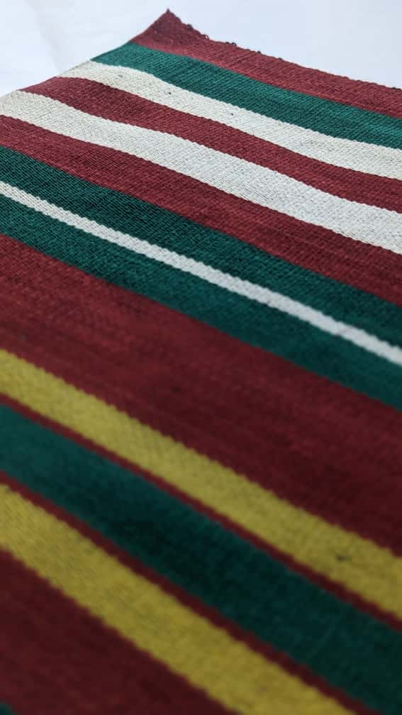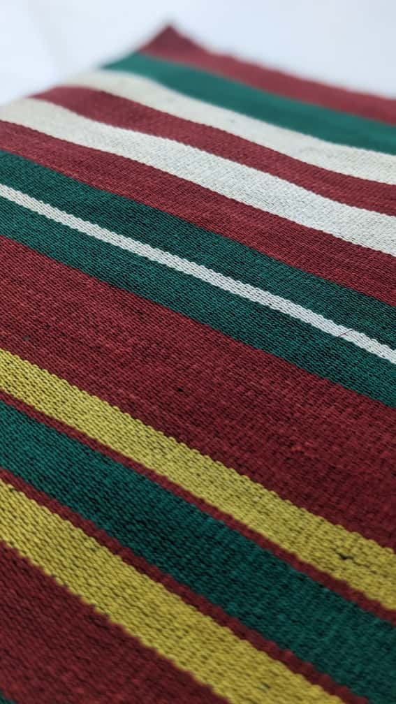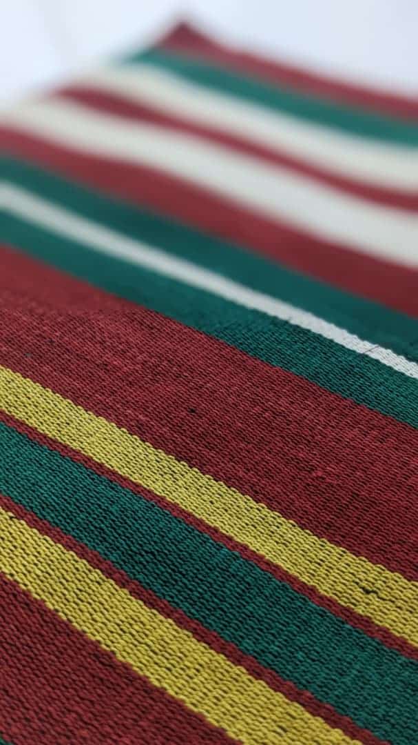 Une pièce vibrante qui célèbre la joie, l’énergie et les savoir-faire africains. Ses couleurs évoquent la fête, la tradition et la créativité du tissage local.