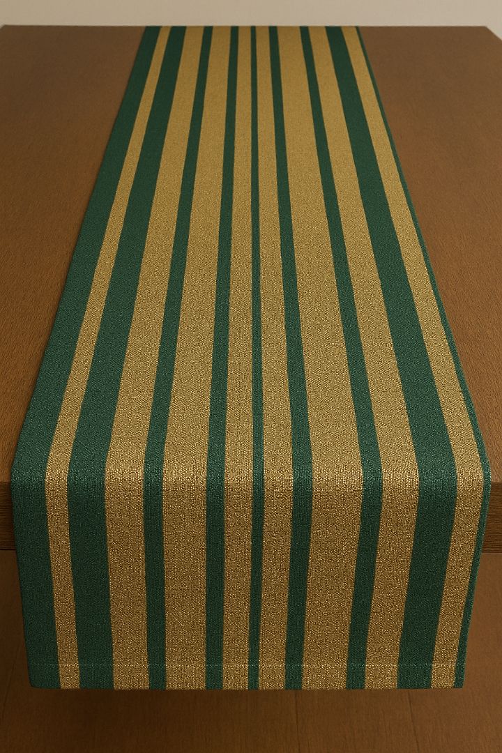 Alliance de nature et de lumière, “Forêt Dorée” évoque les forêts de fin d’année. Ses rayures vert et or apportent chic et raffinement à votre table. Un tissage dense et soigné, réalisé à la main avec du coton bio.