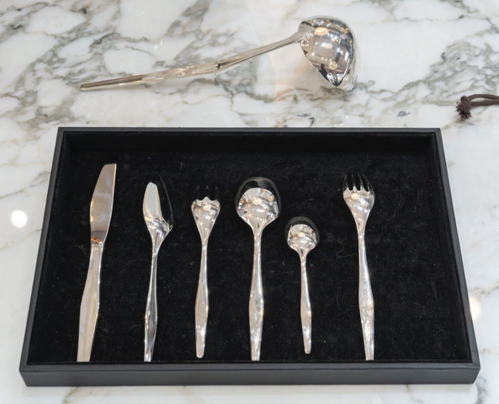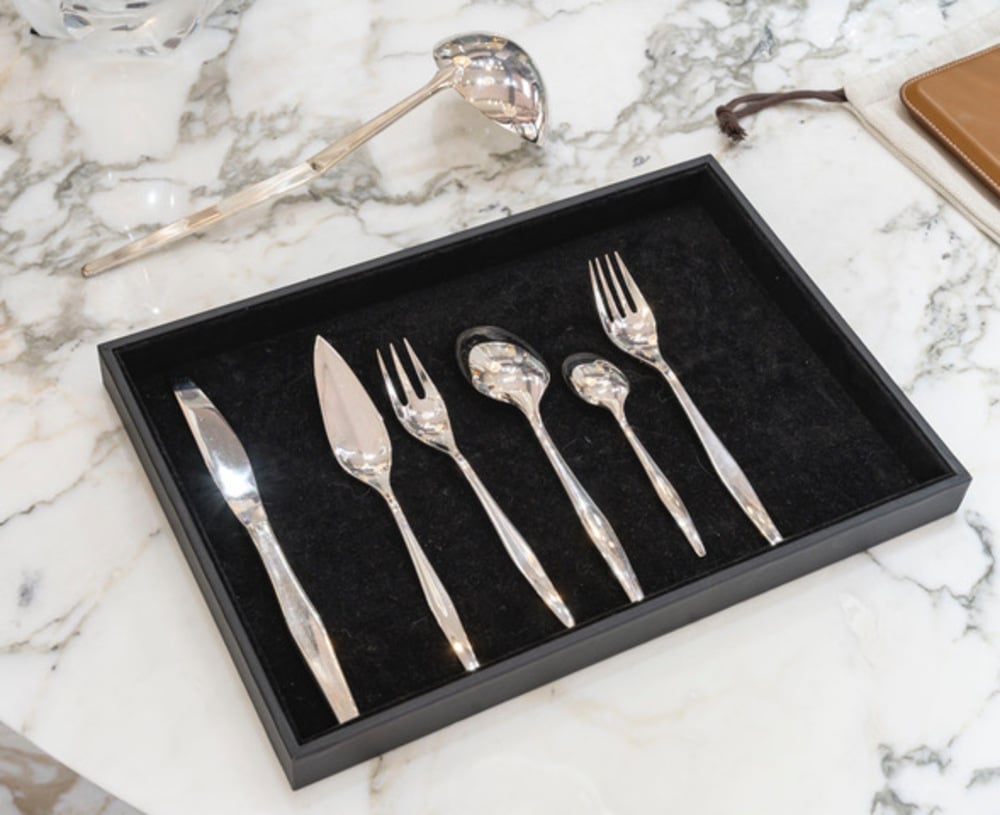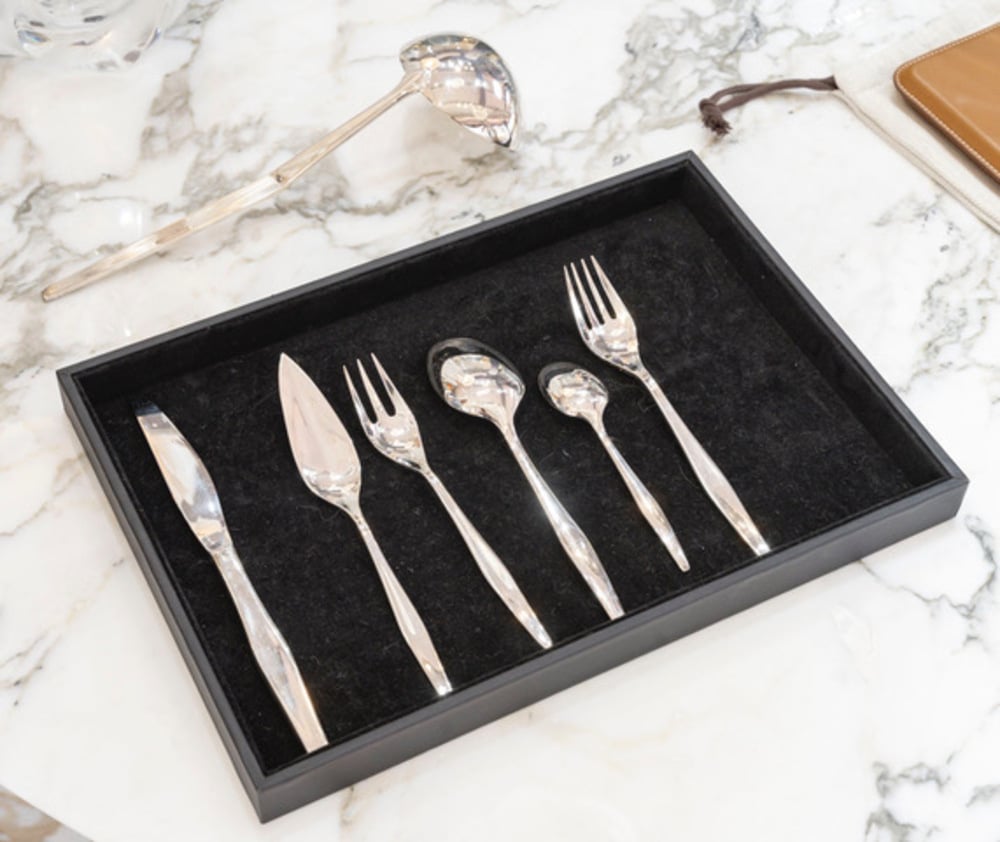 Petit détail totalement novateur : le couteau à poisson est le premier de l’histoire du couvert qui convient parfaitement aux gauchers !
