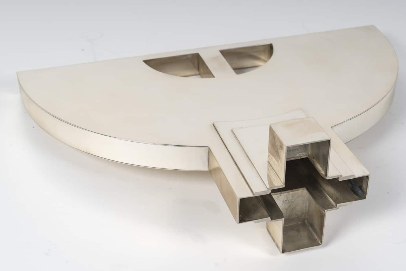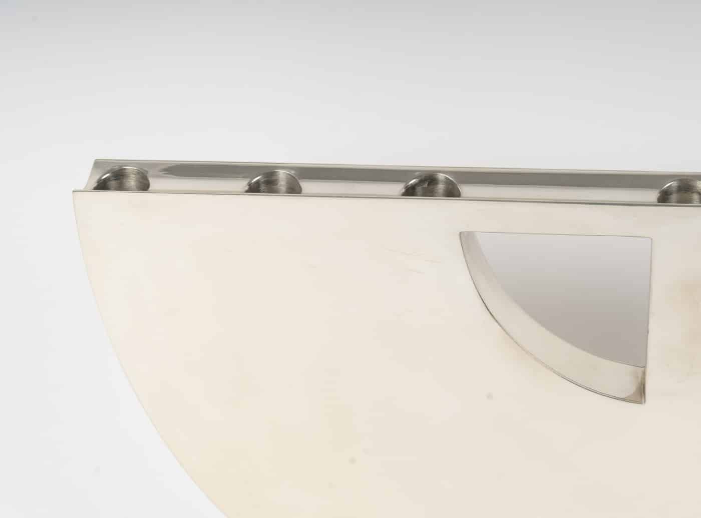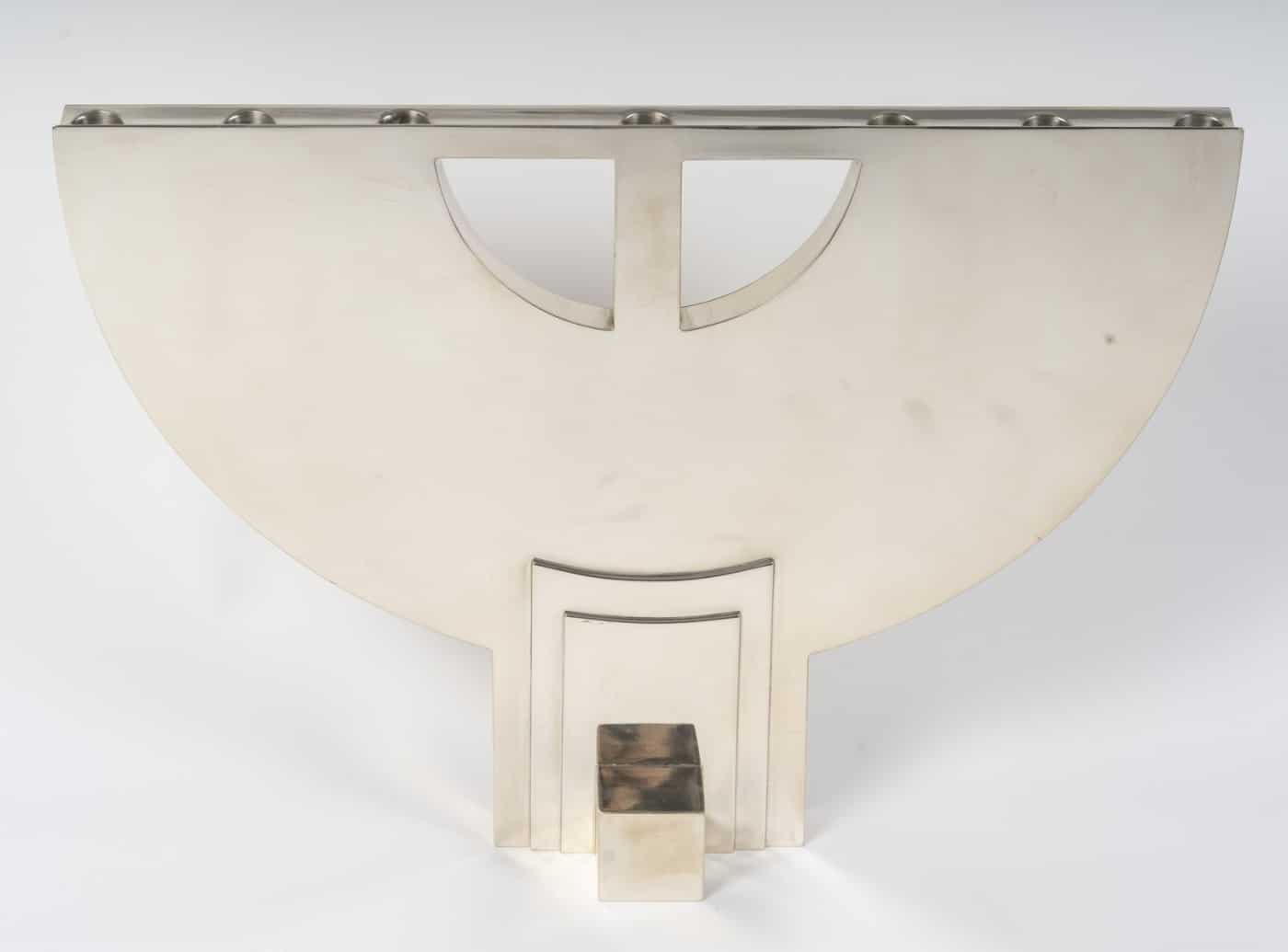 Chandelier moderniste en argent massif, à sept bougies, signée Hans Hollein pour Cleto Munari.