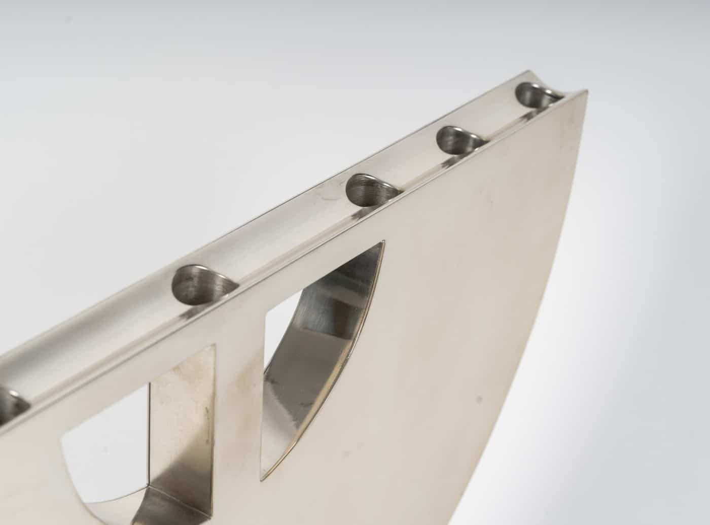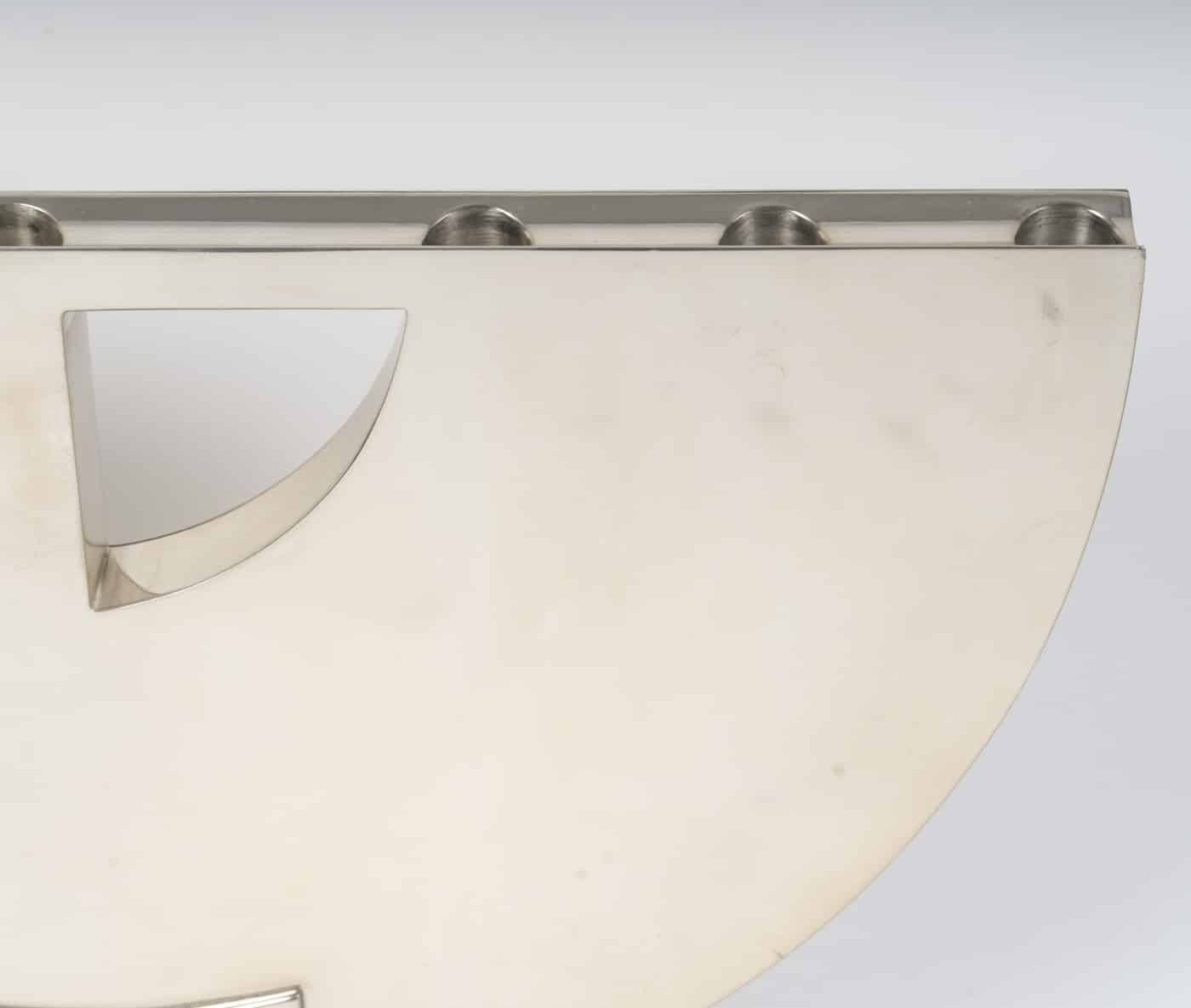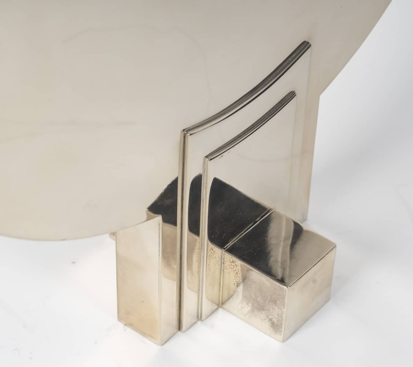 Chandelier moderniste en argent massif, à sept bougies, signée Hans Hollein pour Cleto Munari.