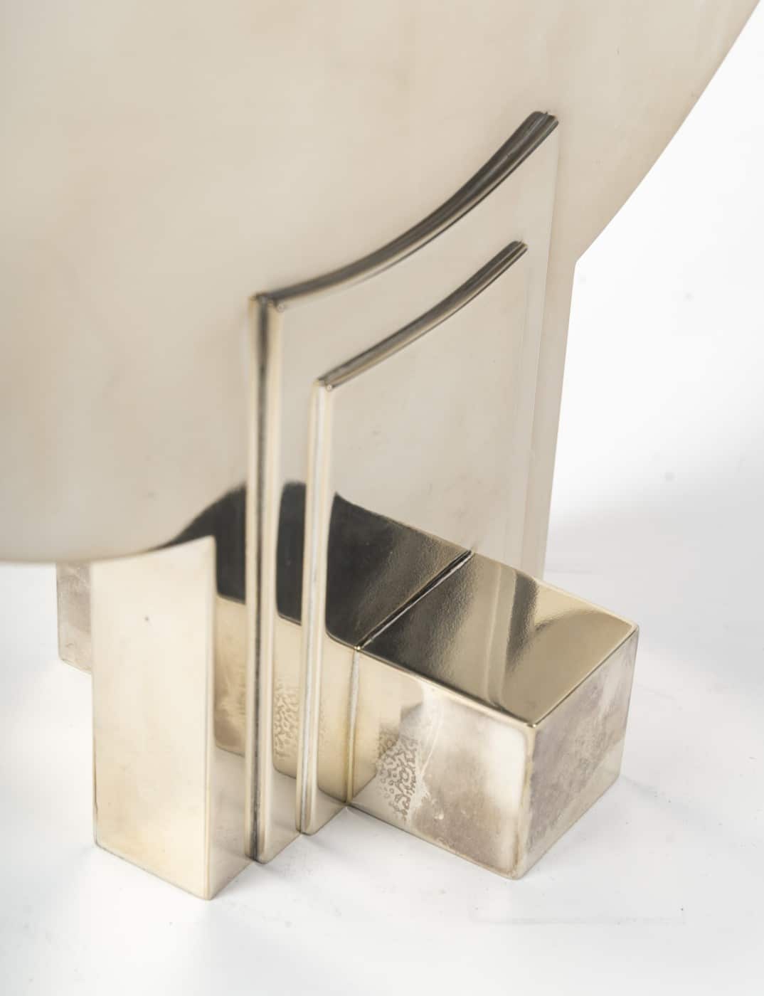 Dans son ensemble le design transcende la fonction rituelle pour en faire une sculpture en argent, typique de l’esthétique sobre et innovante défendue par MUNARI.