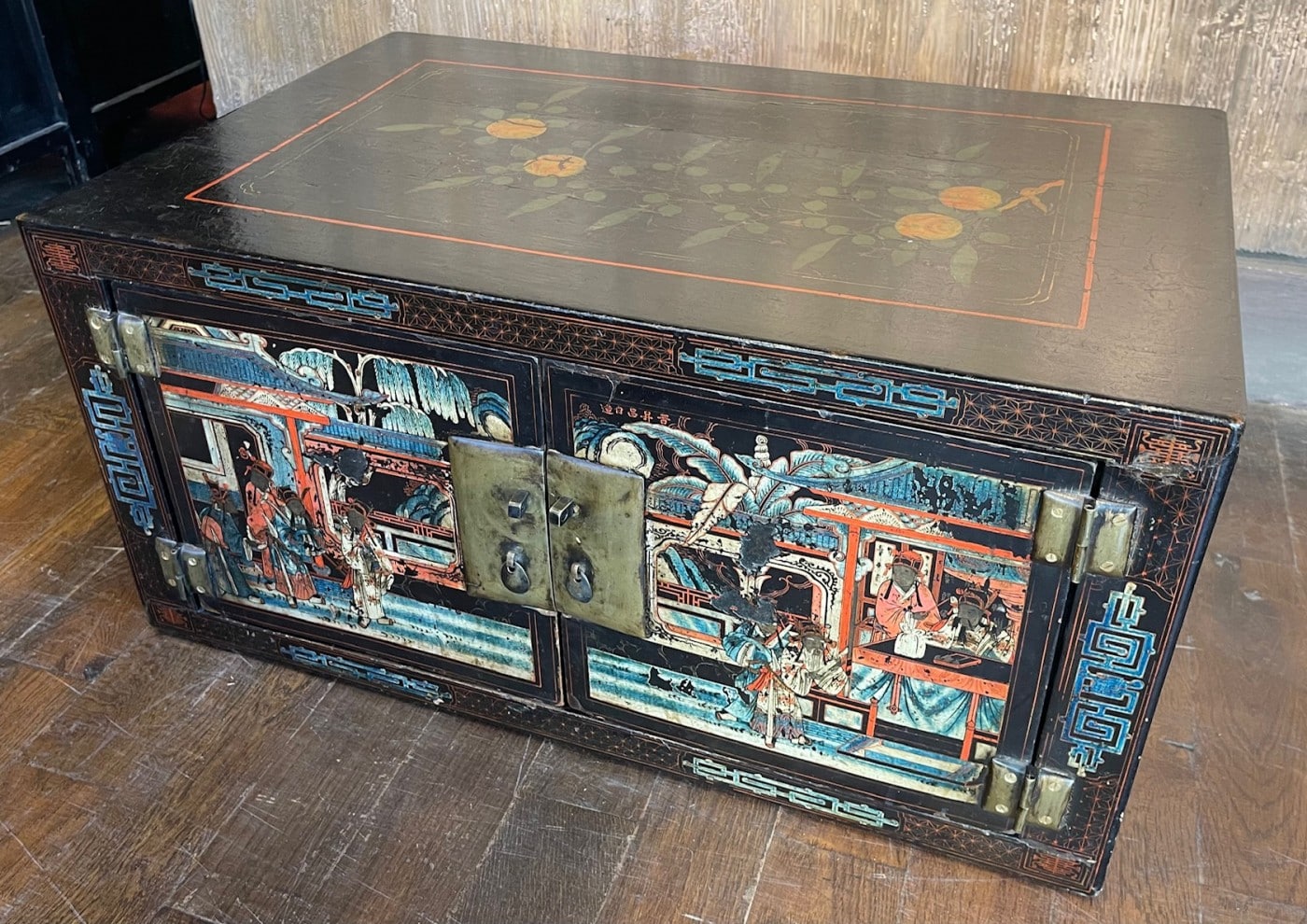 Coffre ancien chinois ouvrant par 2 portes en façade.