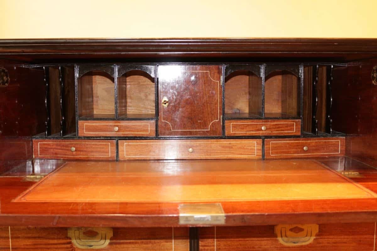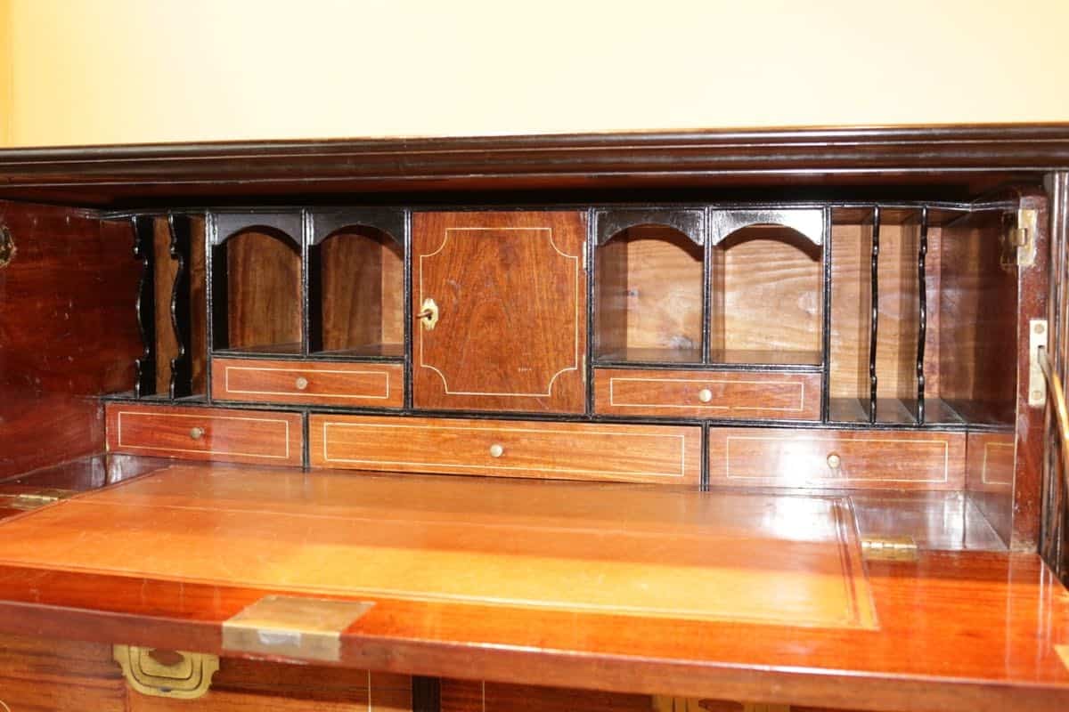 La partie supérieure ouvre à un grand tiroir formant secrétaire et deux tiroirs en dessous.