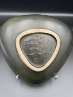 Pol Chambost, né en 1906 à Saint-Étienne, est une figure incontournable de la céramique française du XXe siècle. Son parcours artistique, riche et varié, l’a mené de la sculpture funéraire à la création de pièces d’art de la table avant-gardistes. Après des études à l’École des Arts Appliqués à l’Industrie de Paris, Pol Chambost reprend l’entreprise familiale de marbrerie. C’est dans cet univers qu’il se familiarise avec les matières premières et les techniques de sculpture. Cependant, c’est vers la céramique que son cœur balance.Dans les années 1930, il ouvre son propre atelier et commence à expérimenter de nouvelles formes et de nouvelles glaçures. Ses premières créations sont influencées par l’Art Déco, avec des lignes épurées et des formes géométriques. Mais c’est dans les années 1950 que son style se bonifie. Il explore alors des formes plus organiques, inspirées de la nature, et utilise des couleurs vives et contrastées. Pol Chambost était non seulement un céramiste talentueux, mais aussi un entrepreneur. Il a créé sa propre marque et a exporté ses créations dans le monde entier. Ses pièces sont aujourd’hui recherchées par les collectionneurs et les amateurs d’art.