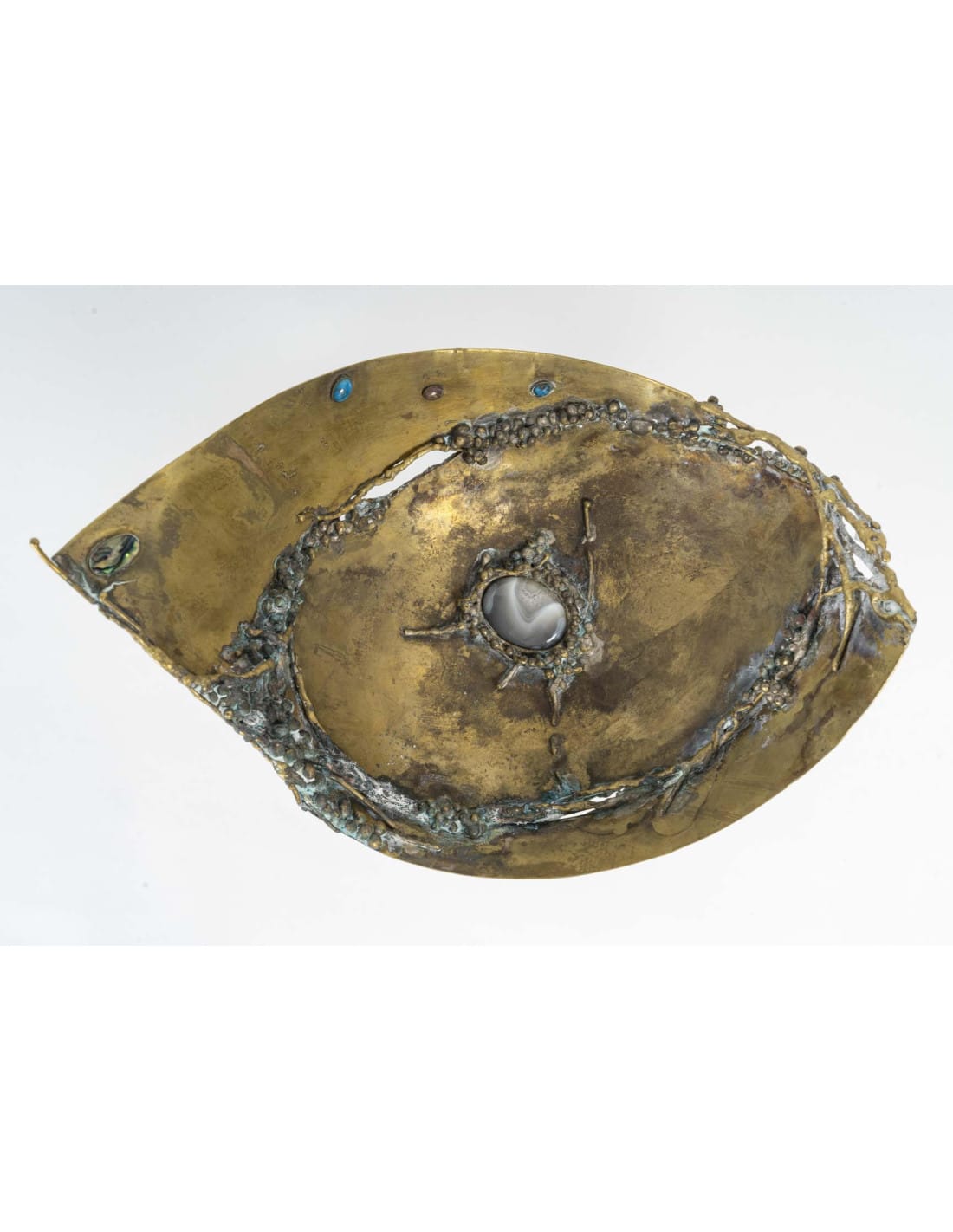 Coupe des années 1960 en laiton avec incrustation de pierres semi-précieuses.