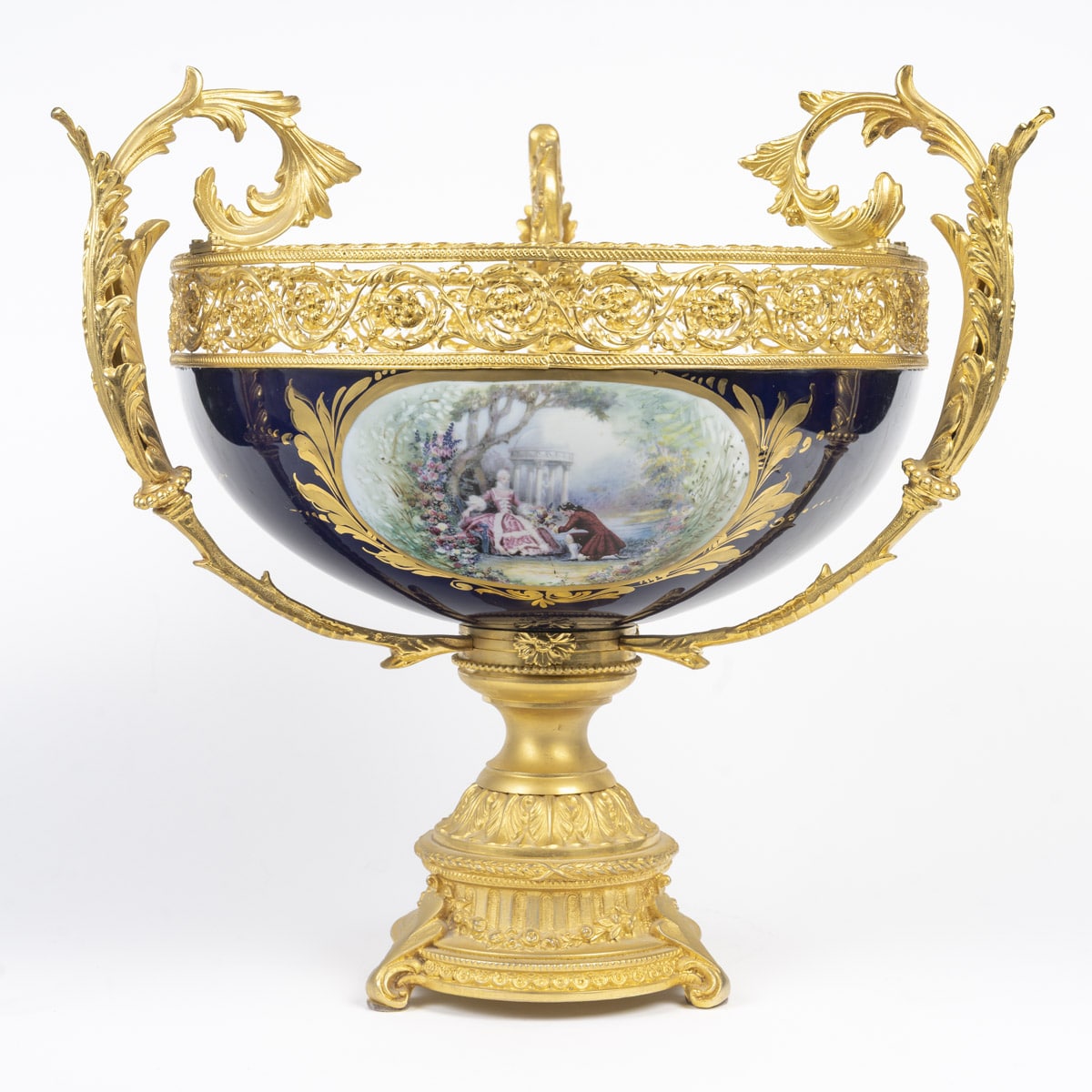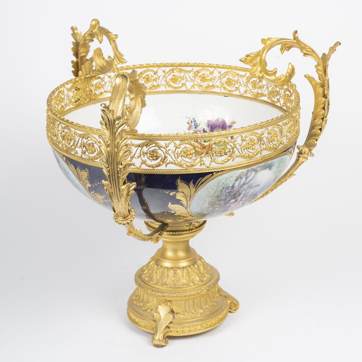 Coupe en porcelaine de Tiche sur une monture en bronze ciselé et doré.