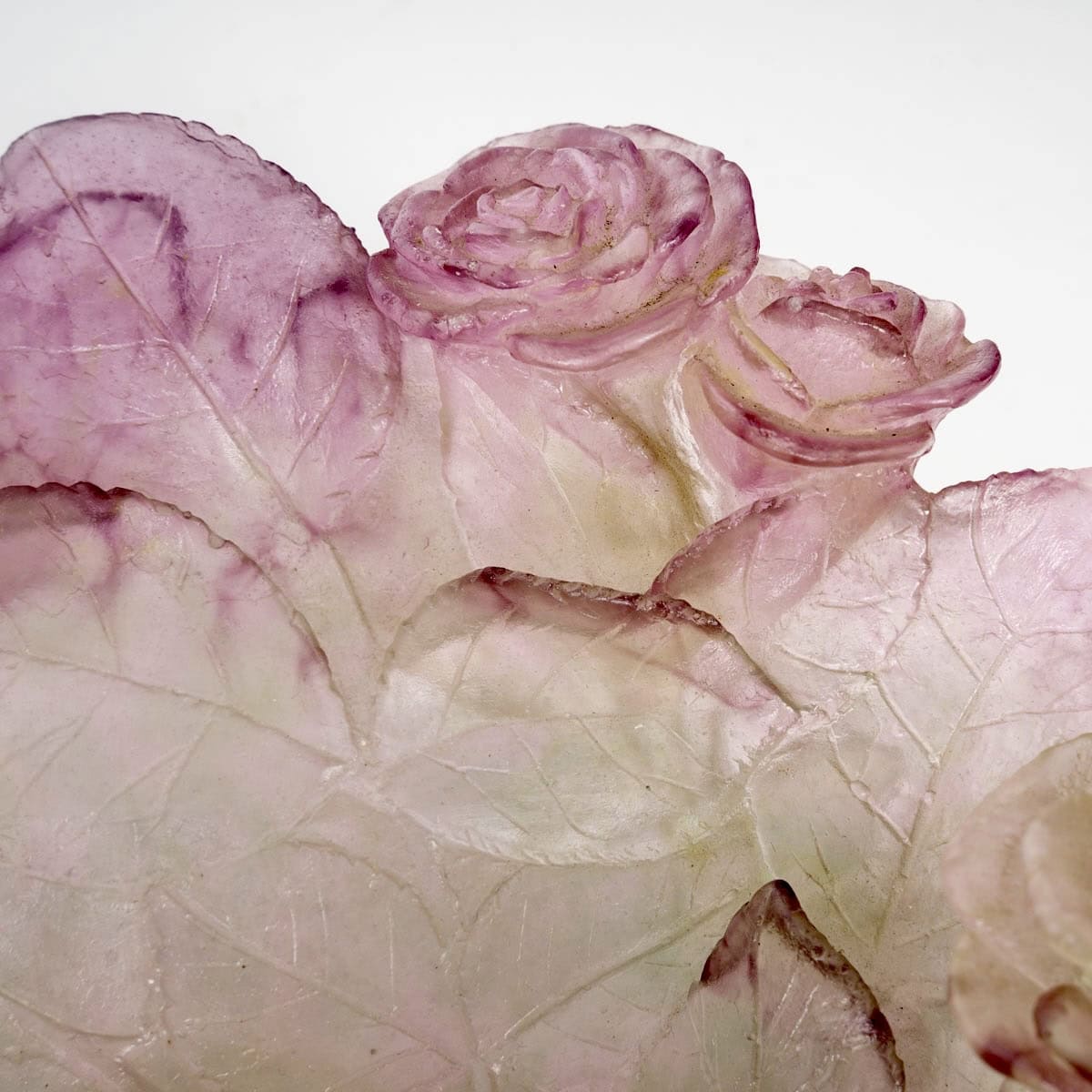 Coupe « Roses » en cristal rose et verte de Daum France.