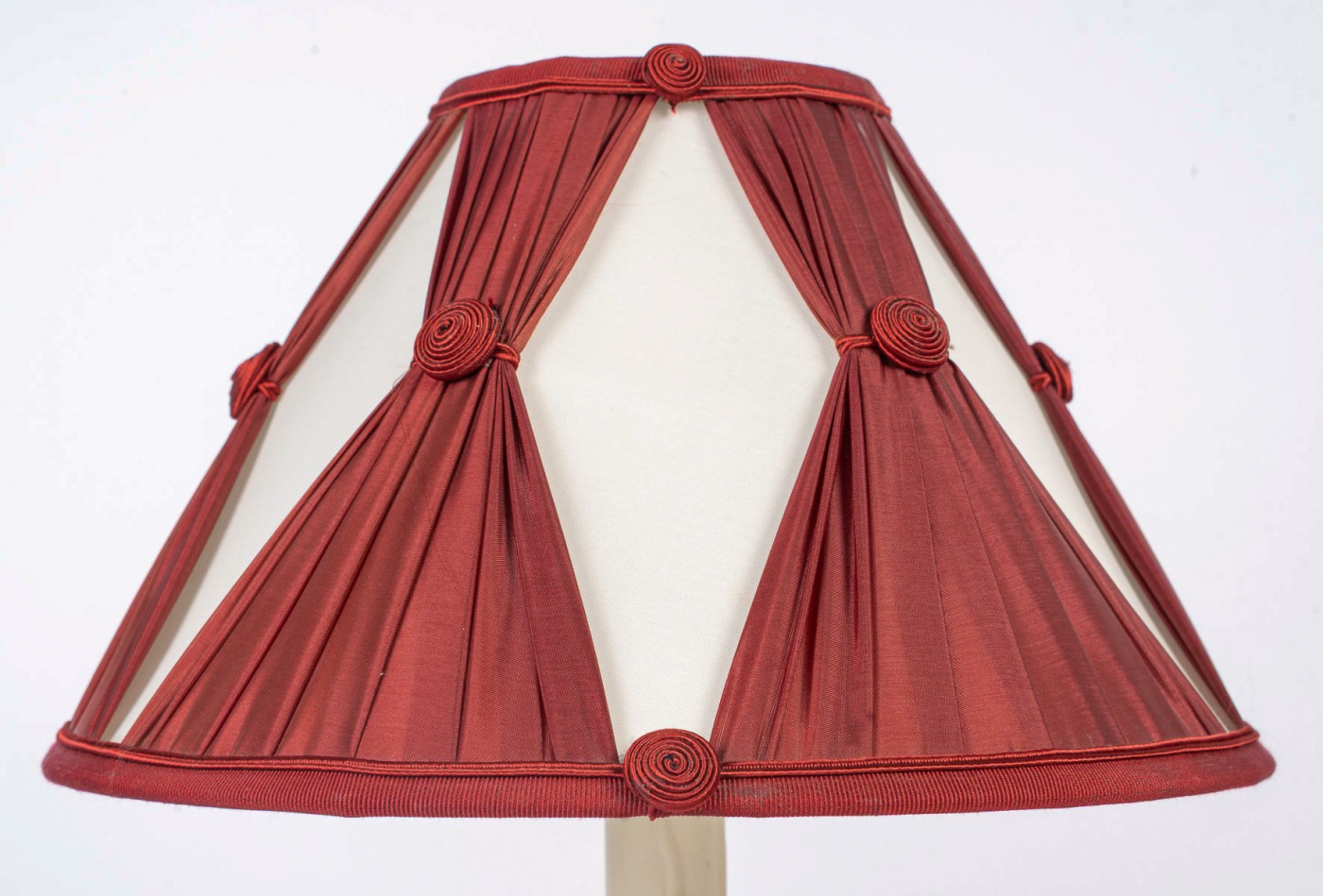 Ces flambeaux ont été convertis en lampes. Ils sont parés de superbes abat-jours neufs en soie de couleur Rouge et Blanc, ajoutant une touche de modernité à leur charme classique. L’électrification est conforme aux normes européennes et américaines, garantissant une utilisation sécurisée.