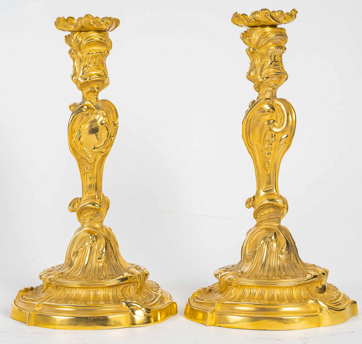 Inspired by the designs of Juste-Aurèle Meissonnier, these candlesticks exemplify exceptional French craftsmanship. Crafted circa 1850, they retain remarkably preserved original gilding, lending each piece a unique authenticity.