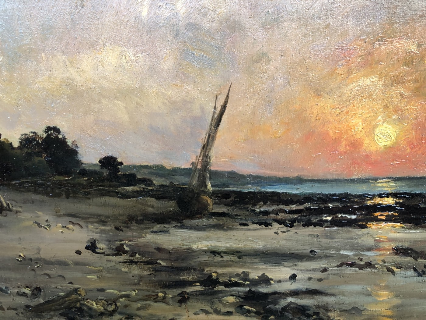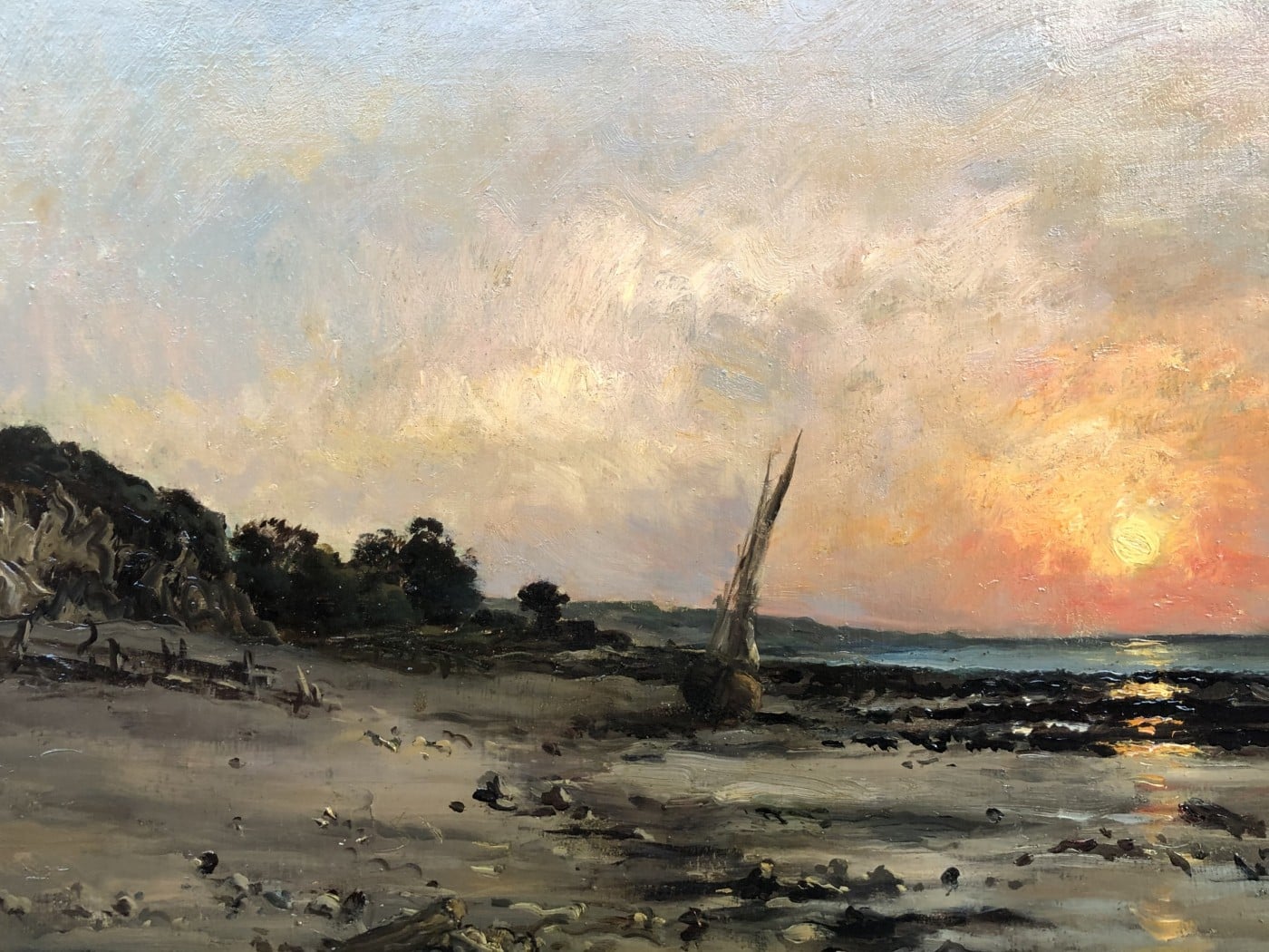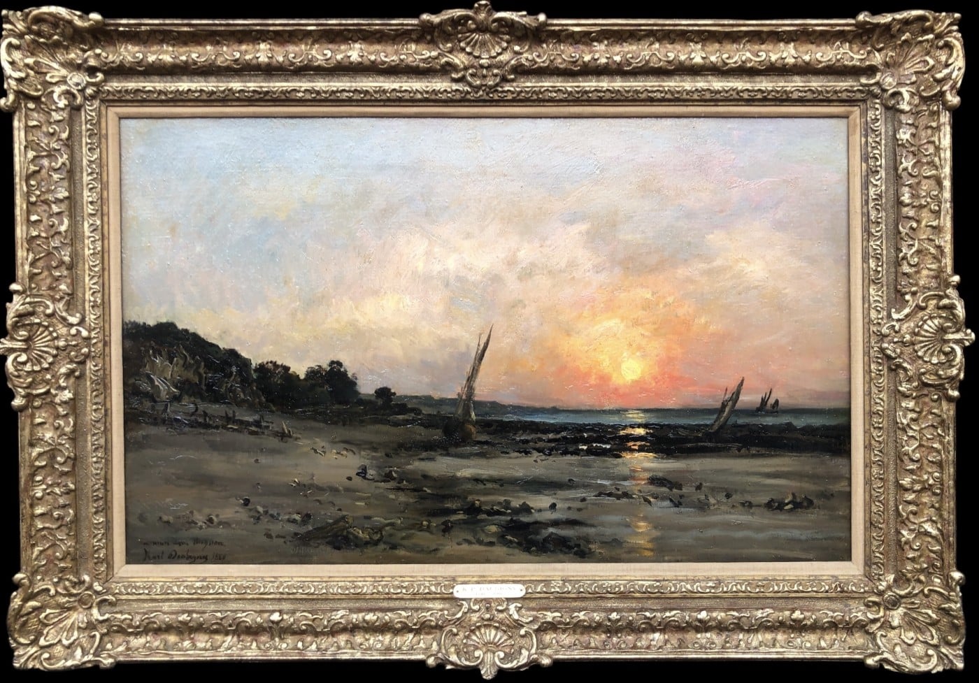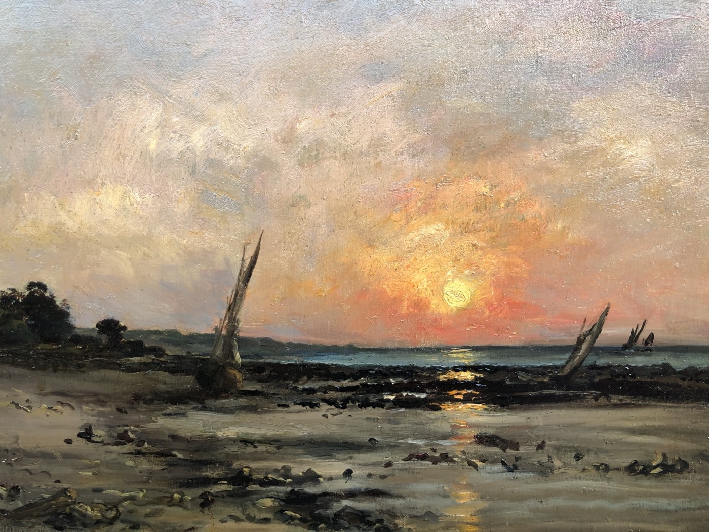 DAUBIGNY Karl Soleil couchant en bord de mer Huile sur toile signée datée dédicacée Certificat d’authenticité.