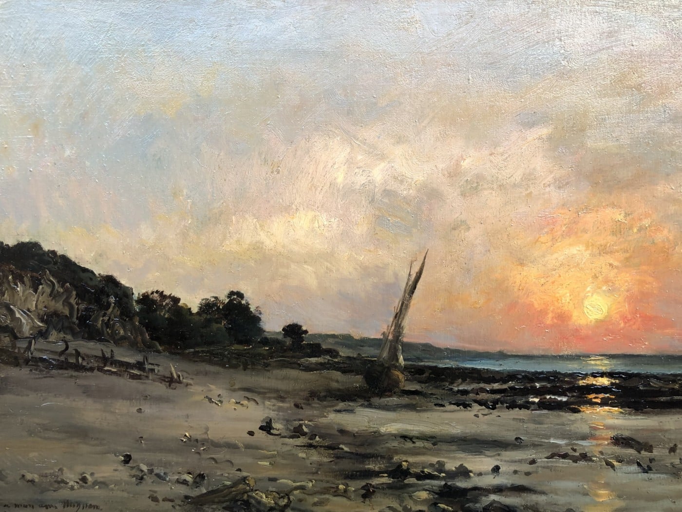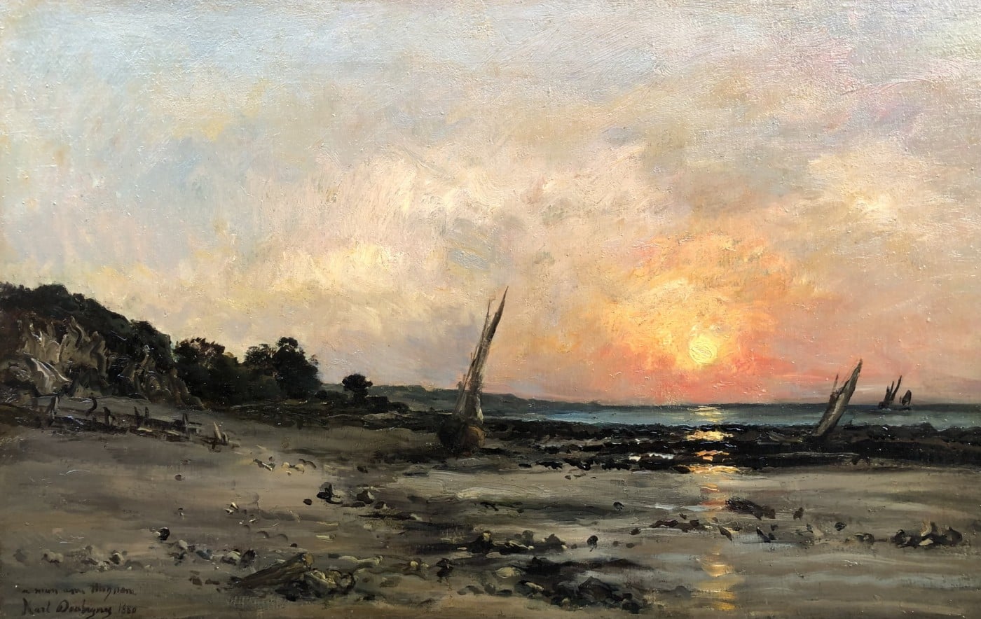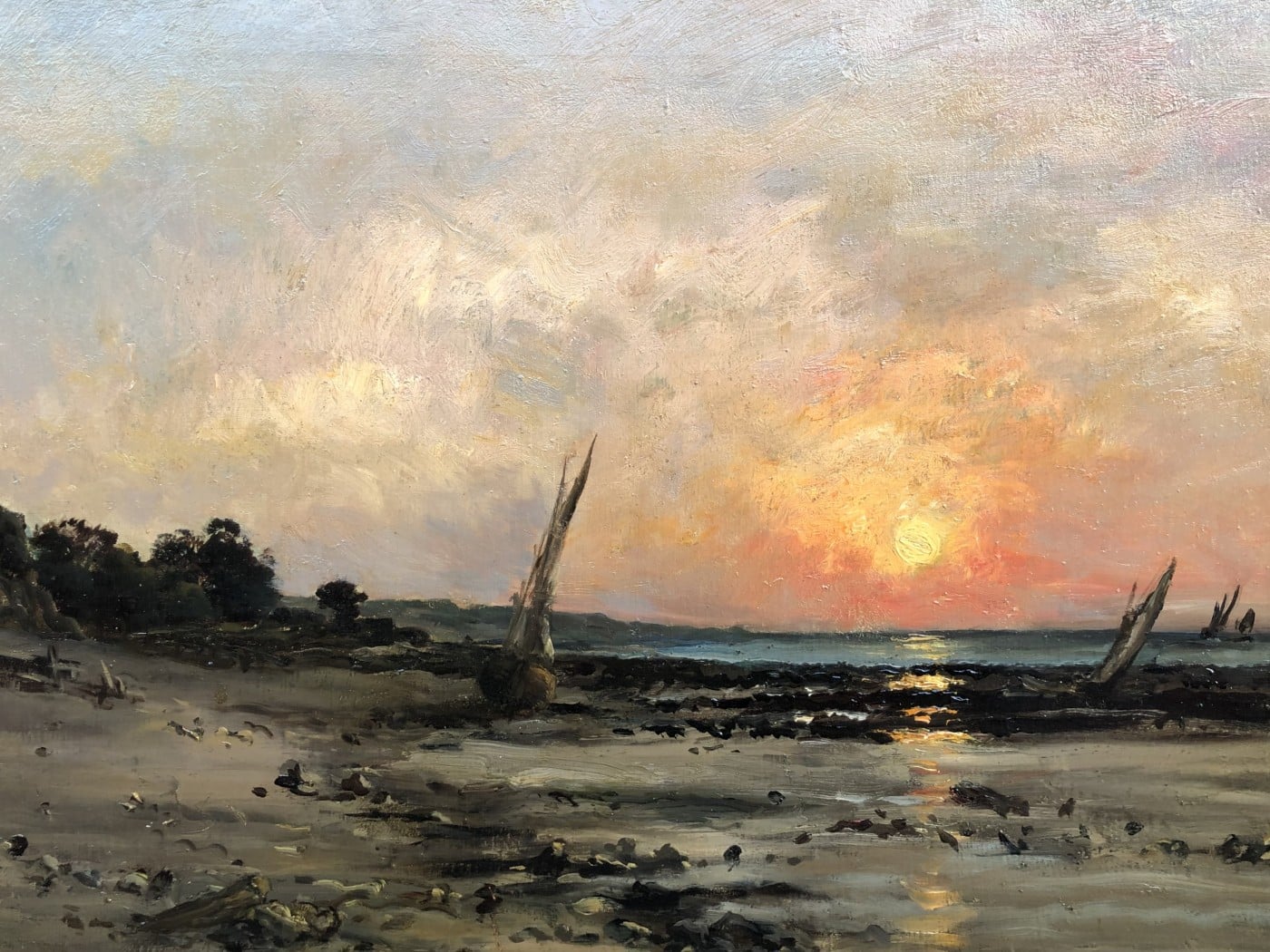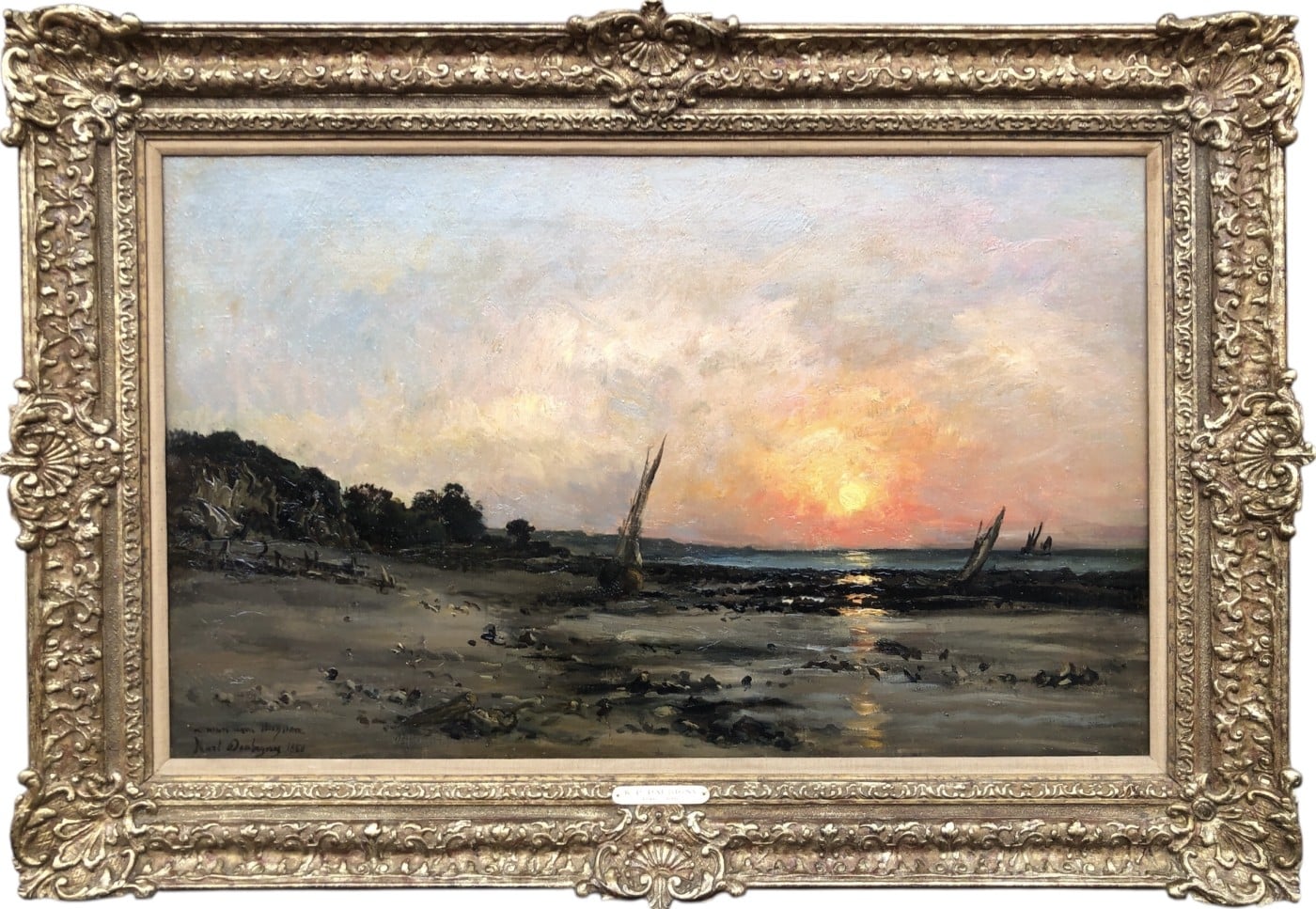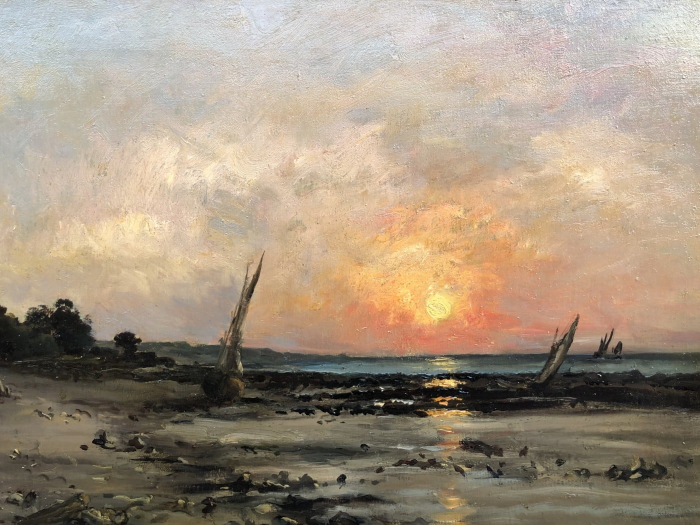 DAUBIGNY Karl Soleil couchant en bord de mer Huile sur toile signée datée dédicacée Certificat d’authenticité.