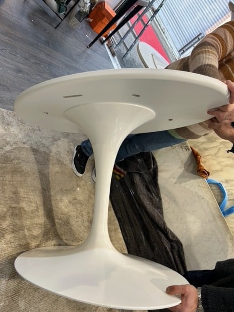 Conçue par Eero Saarinen en 1957, cette table illustre parfaitement l’alliance entre fonctionnalité et design élégant. Le plateau en marbre Arabescato, d’une épaisseur de 2 cm, avec finition polyester brillante et chants biseautés, apporte une touche de luxe. Le piètement en fonte d’aluminium, finition Rilsan blanc, assure stabilité et modernité. Idéale pour accueillir environ 8 personnes, elle constitue une pièce maîtresse pour toute salle à manger.