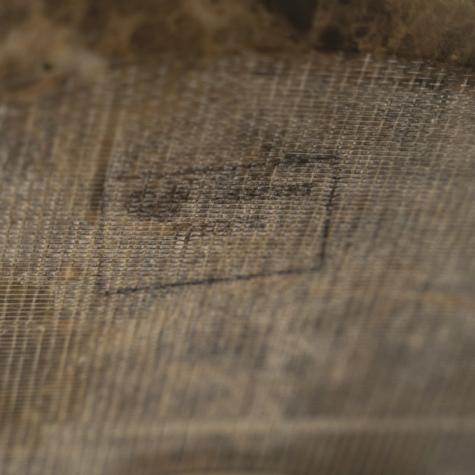 Guéridon à plateau rond en marbre emperador sur un pied tulipe.