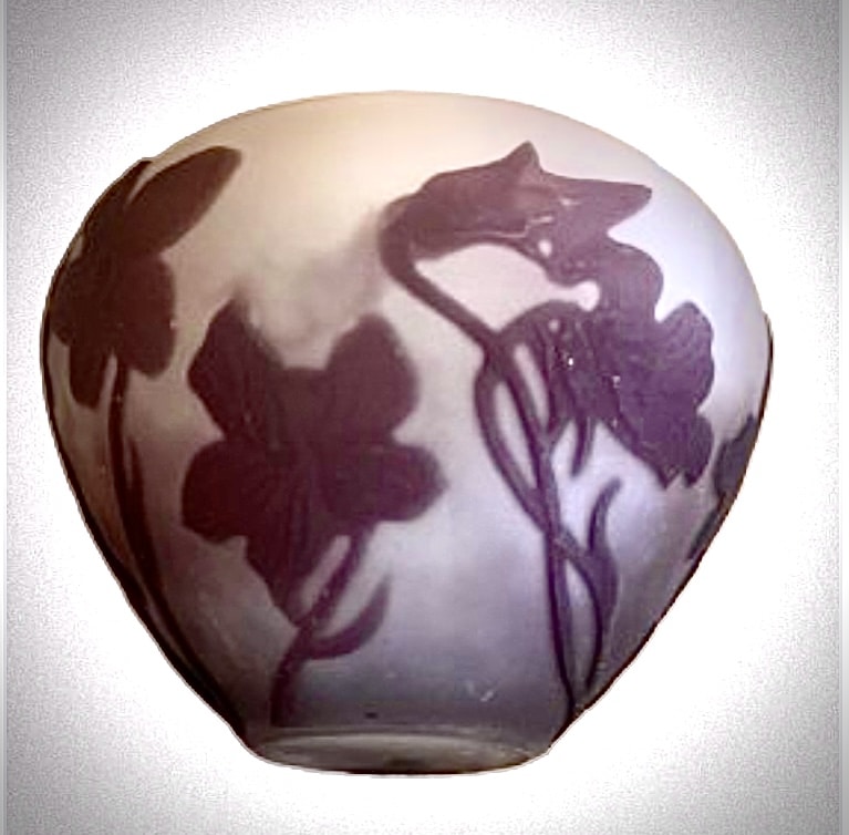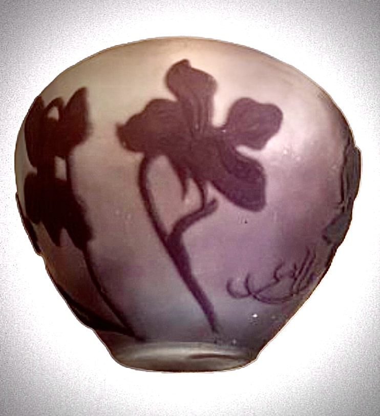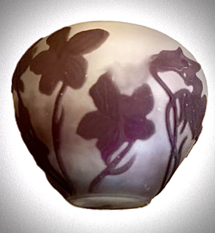 PETIT VASE D ÉMILE GALLÉ À DÉCOR TOURNANT DE FLEURS DE VIOLETTES APPELÉ COMMUNÉMENT « CÉRÉMONIE DU THÉ »
