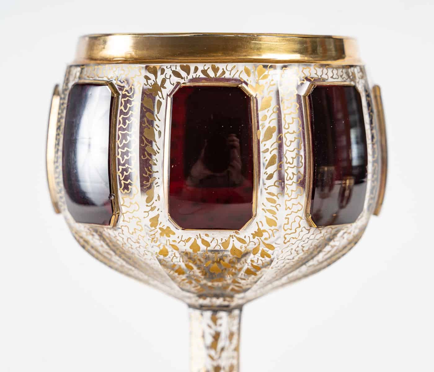 Ensemble de 24 verres rouge et or, XIXème siècle